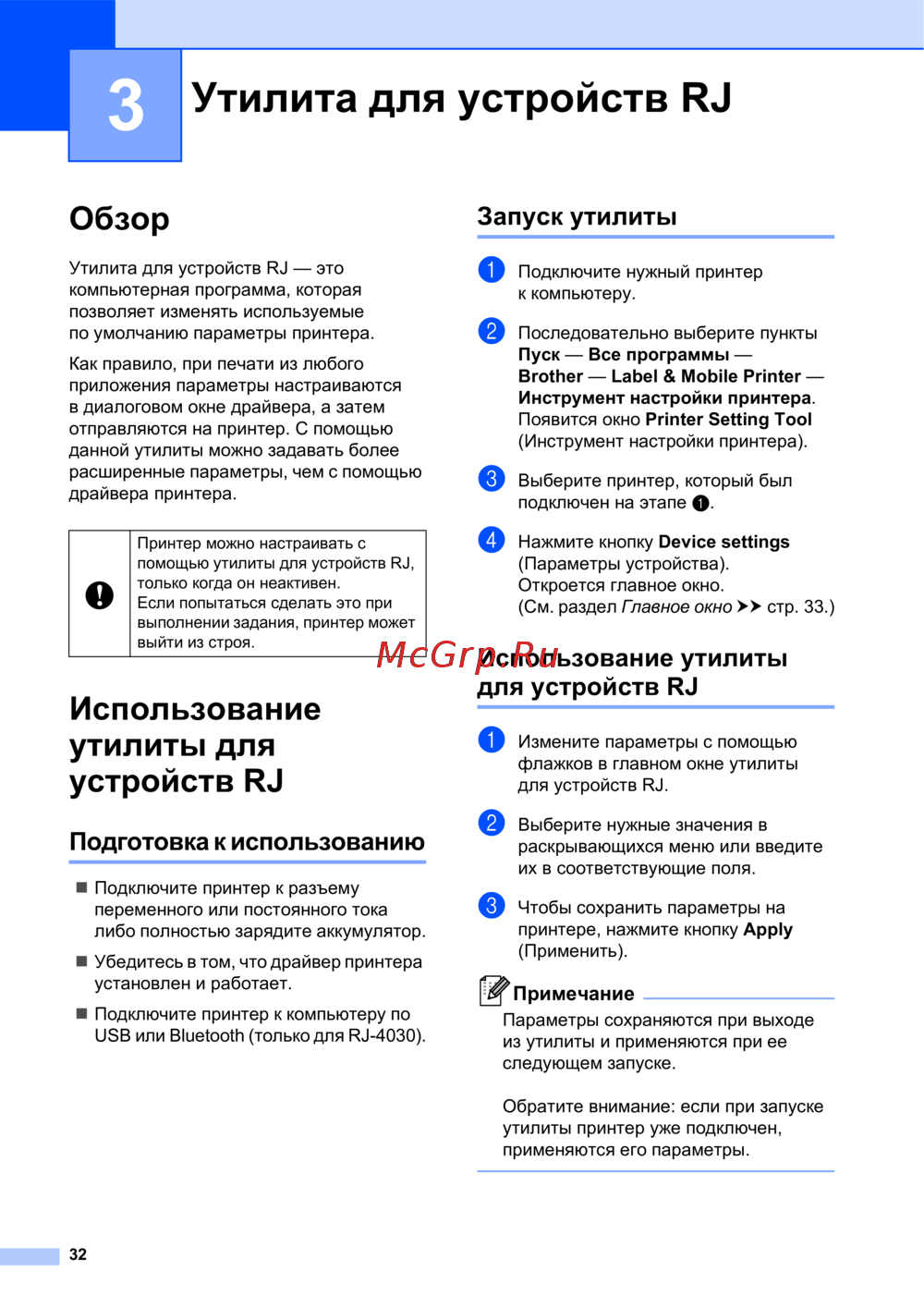 ![Brother RJ-4030 [36/64] Использование утилиты для устройств rj](/views2/1471116/page36/bg24.png)