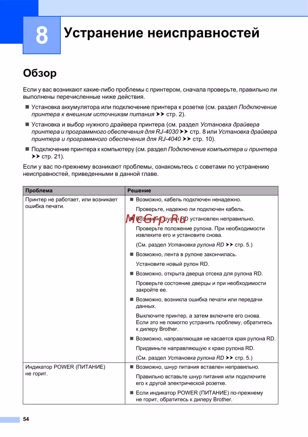 Brother RJ-4030 — руководство по устранению проблем с принтером и настройке [58/64]