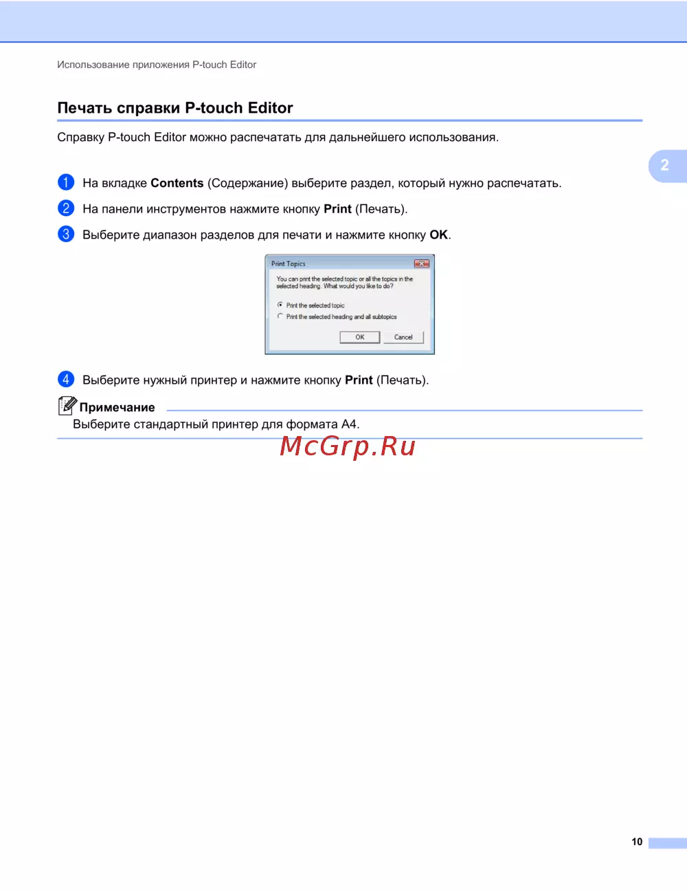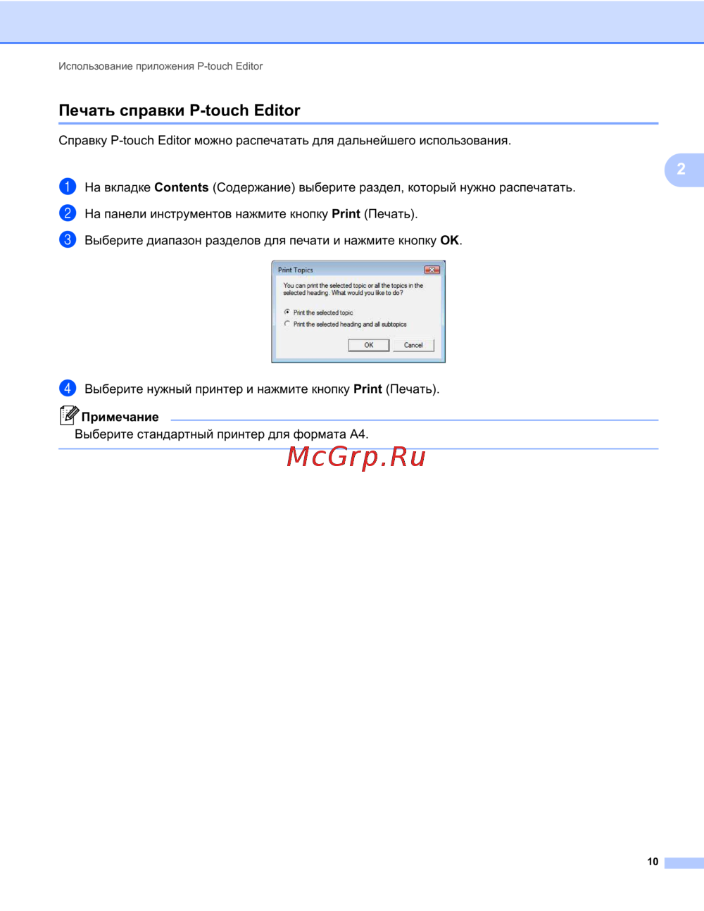 Справку P-touch Editor можно распечатать для дальнейшего использования.