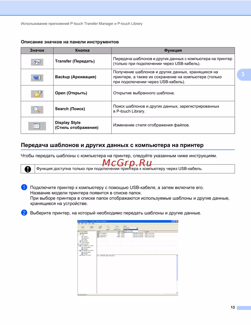 - Использование приложений p touch transfer manager и p touch library 11 p.3