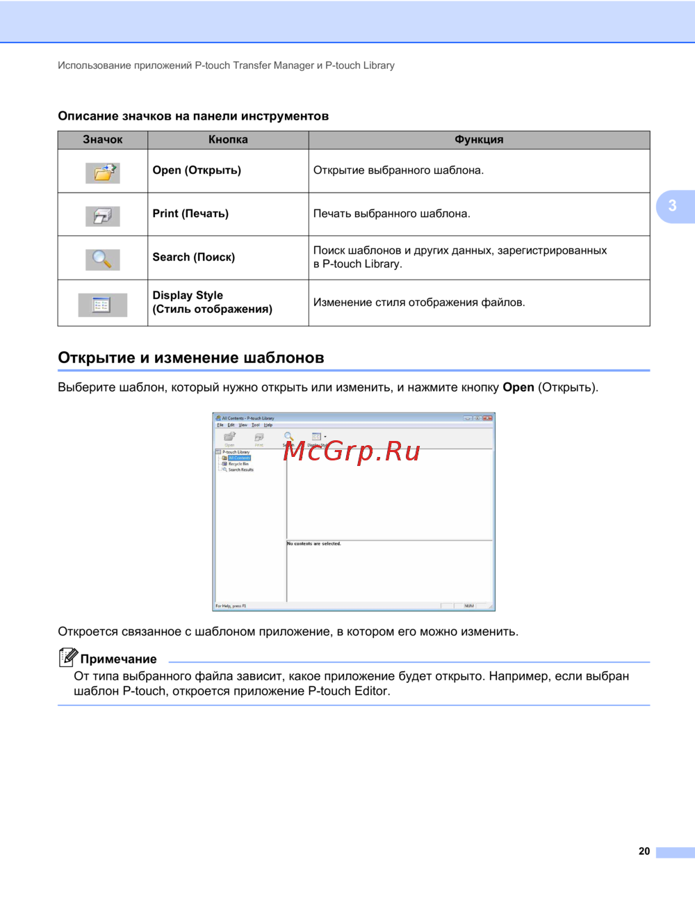 - Примечание от типа выбранного файла зависит какое приложение будет открыто например если выбран шаблон p touch откроется приложение p touch editor p.23