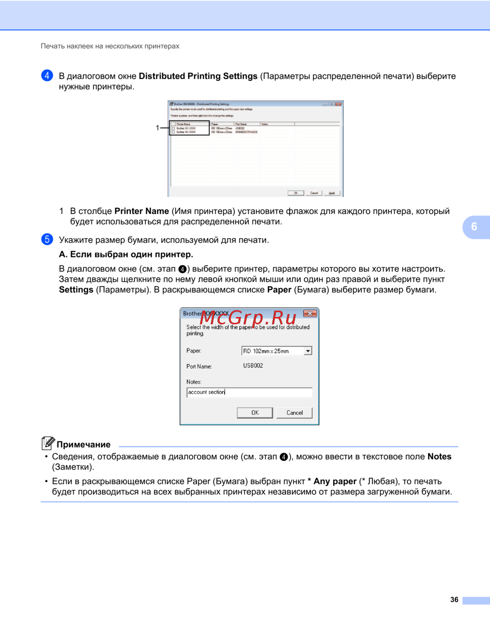 Brother RJ-4030 — настройки распределенной печати для наклеек на принтерах [39/41]