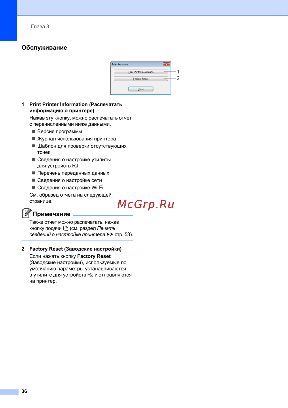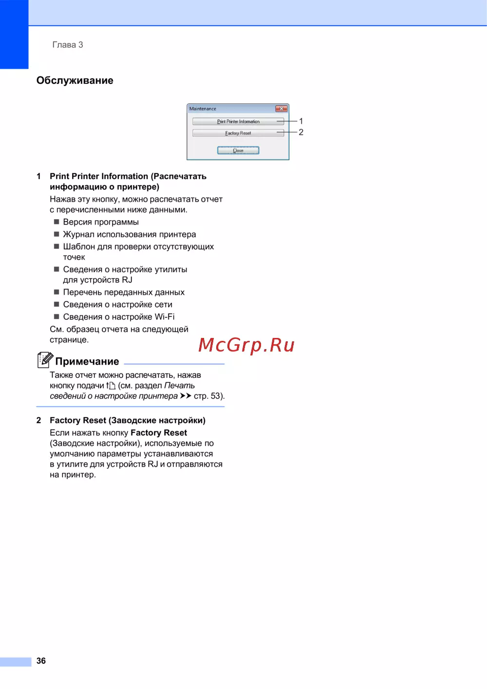 Brother RJ-4040 — обслуживание принтера: распечатка информации и сброс настроек [40/64]