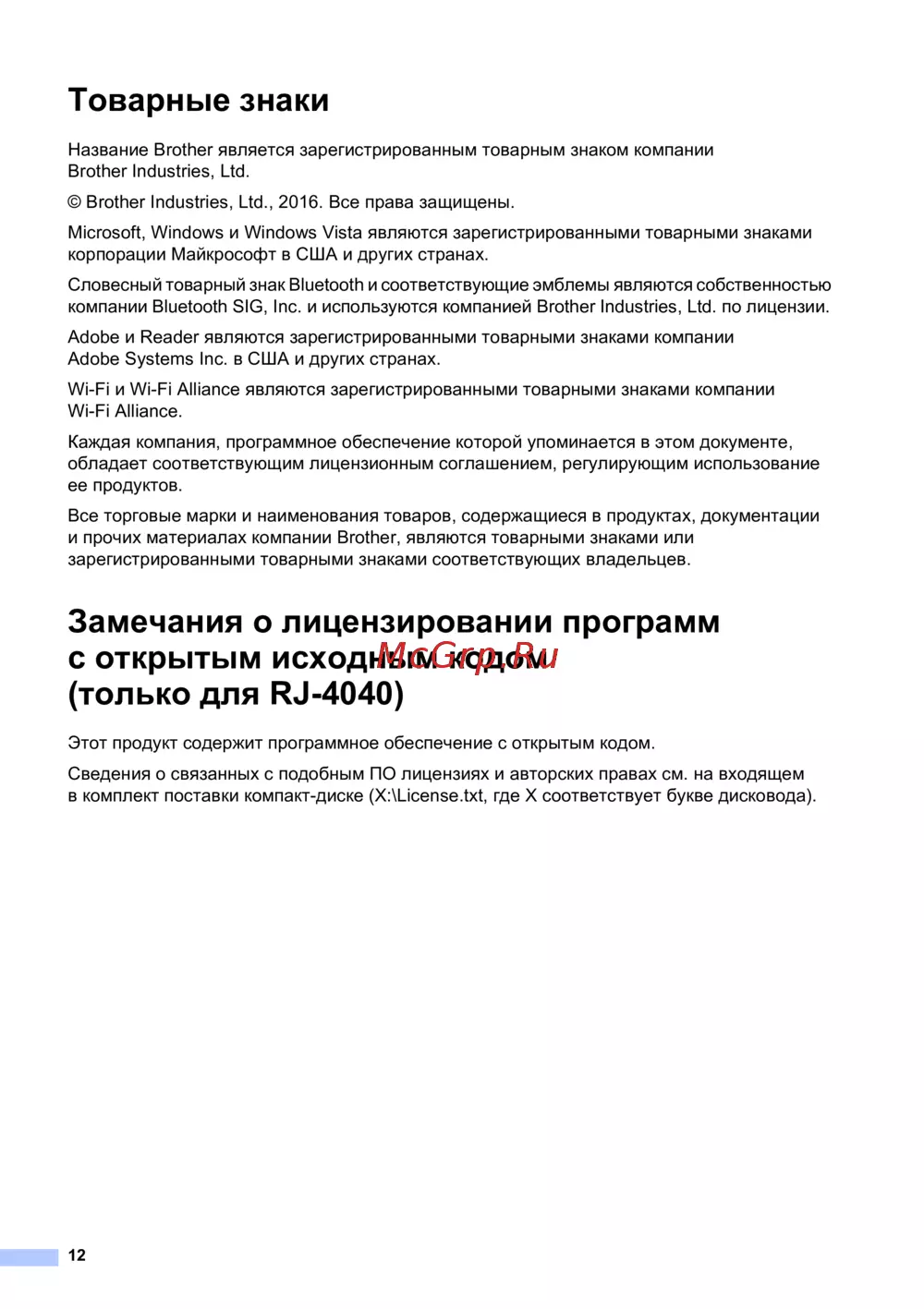 Brother RJ-4040 — информация о товарных знаках и лицензиях на программное обеспечение [13/16]