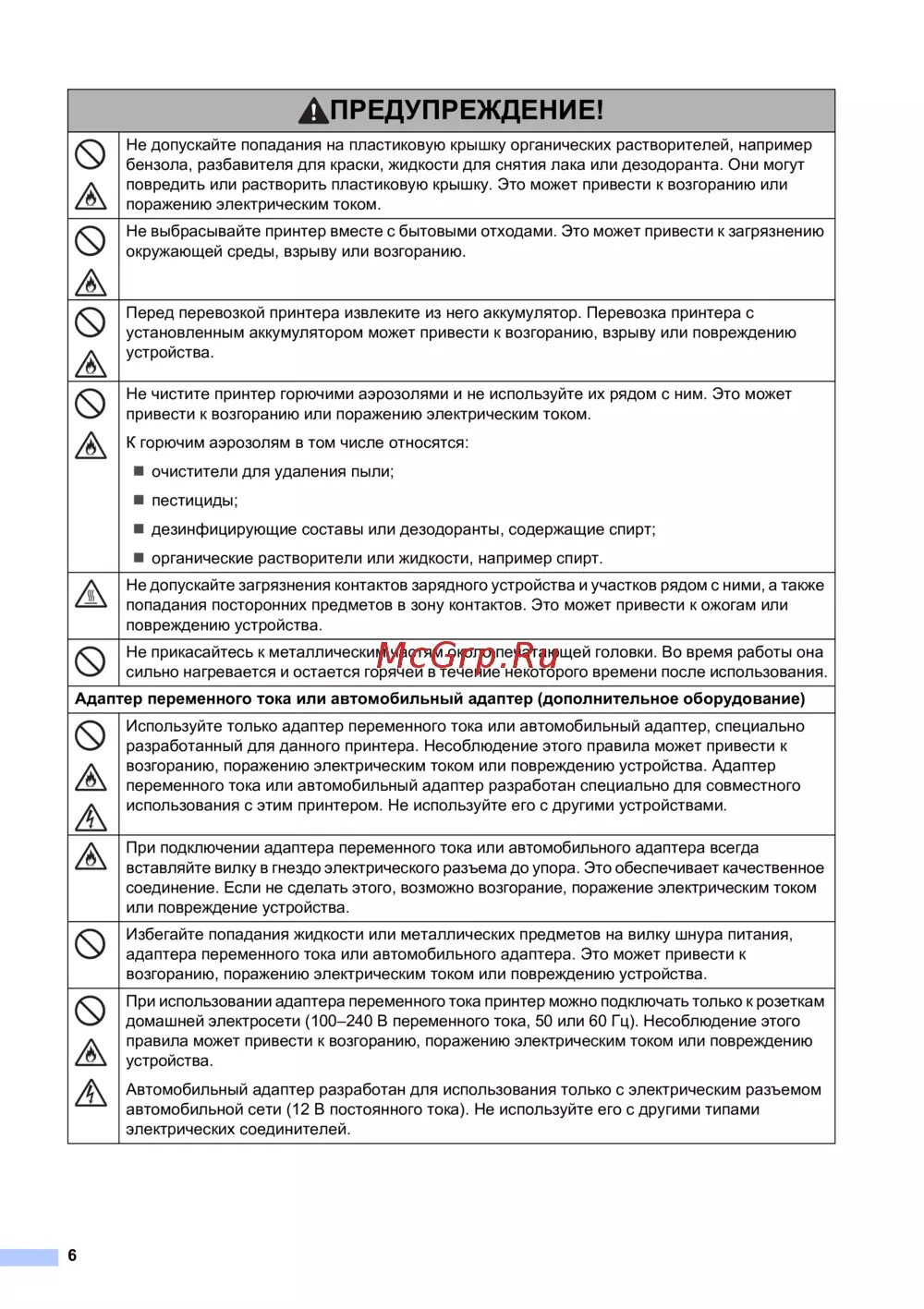 - При неисправности принтера незамедлительно прекратите использовать его и обратитесь к продавцу у которого он был приобретен p.3