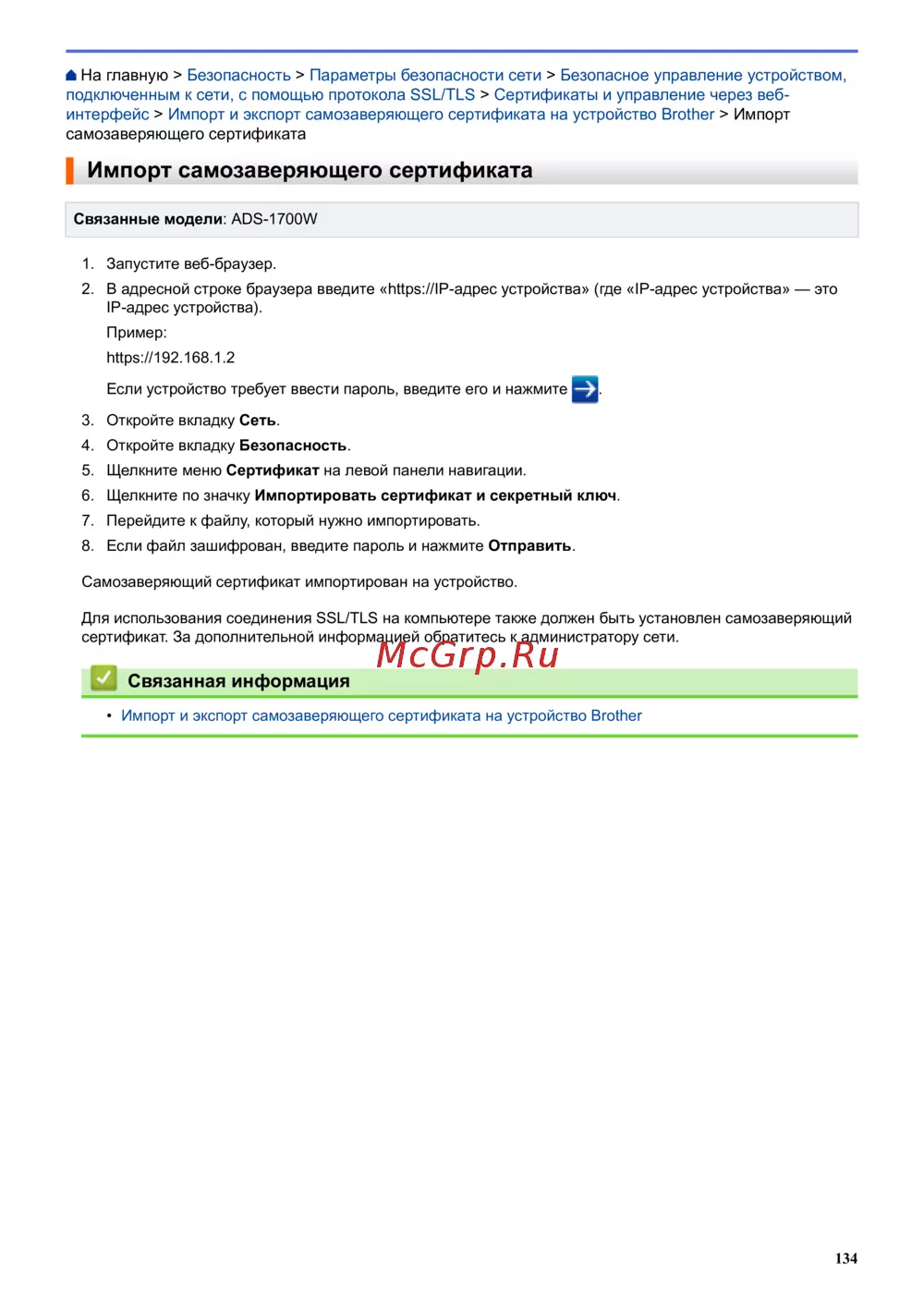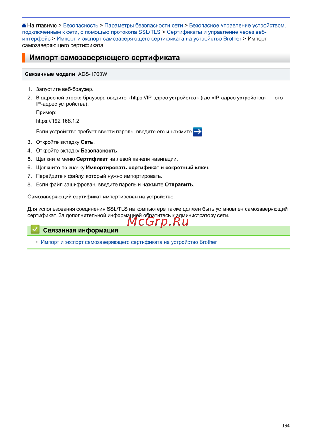 Brother ADS-1200 — импорт и экспорт самозаверяющего сертификата для сетевых устройств [138/223]