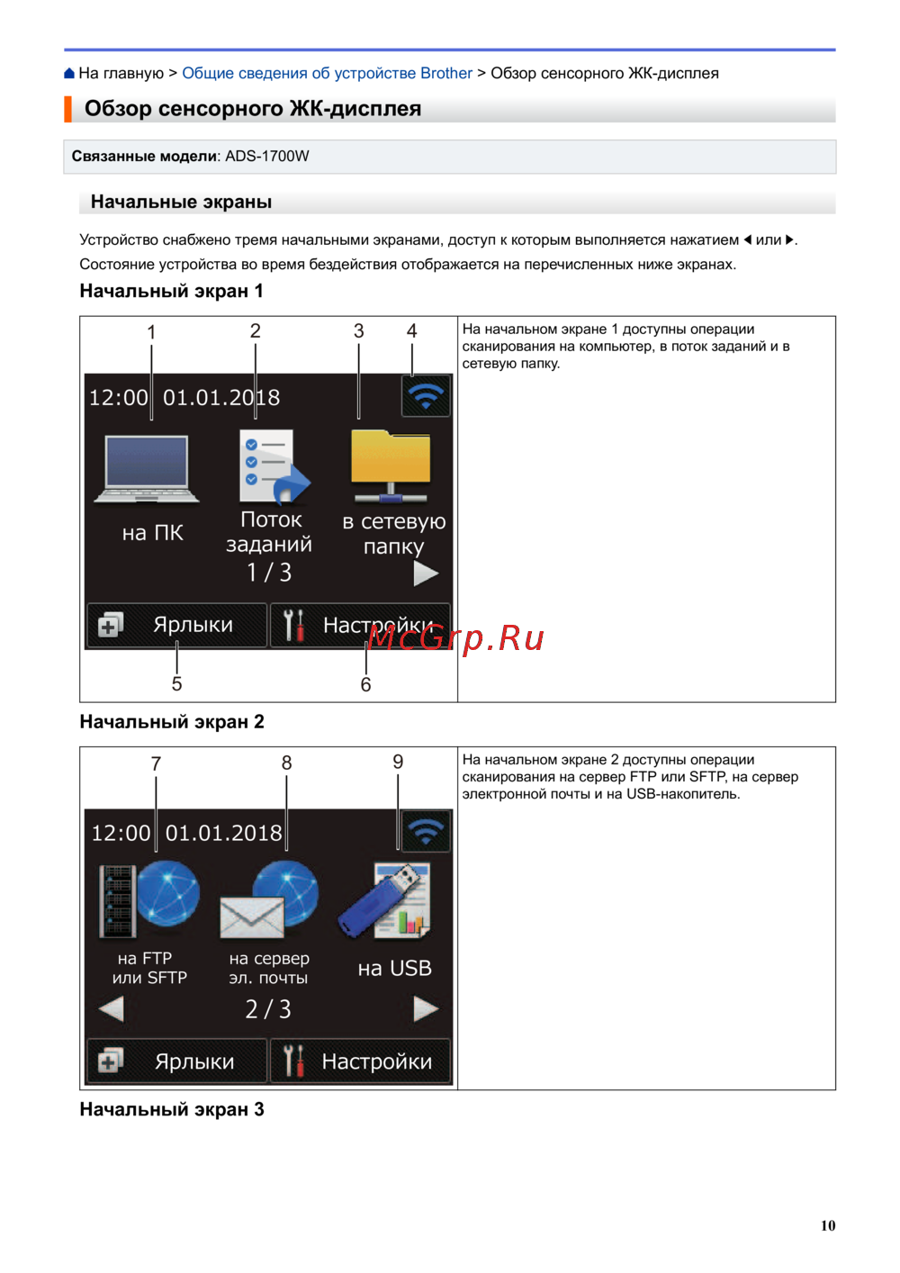 Brother ADS-1200 — обзор сенсорного ЖК-дисплея: функции и возможности устройства [14/223]