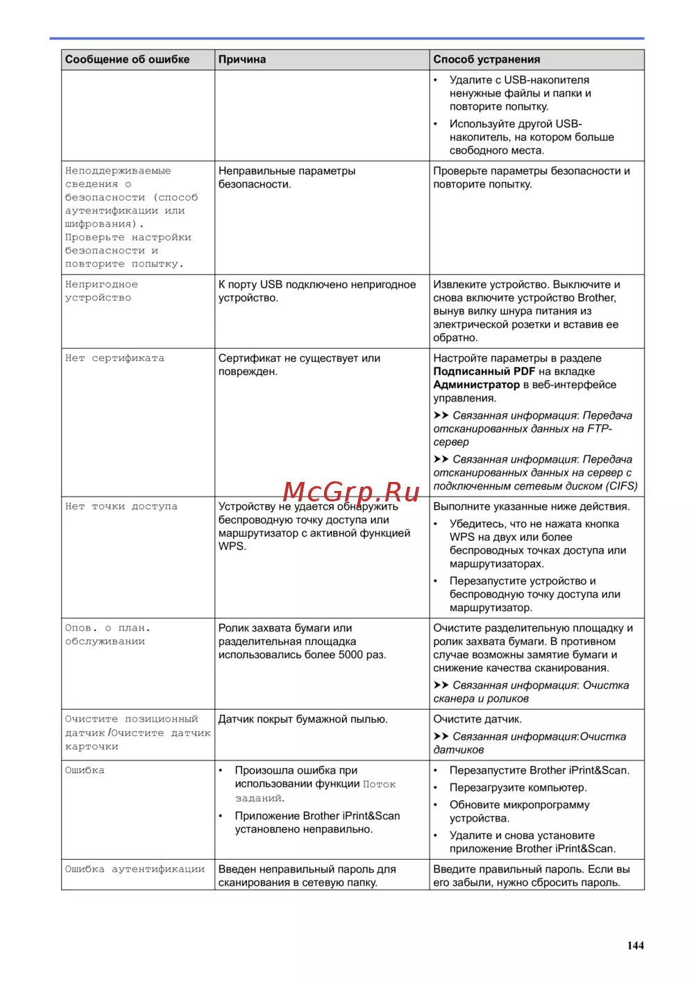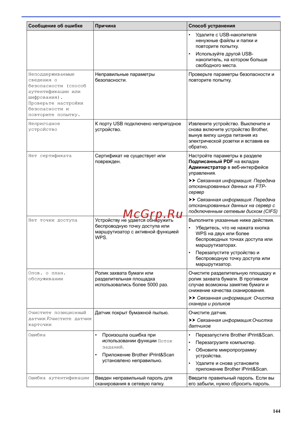 Brother ADS-1200 — устранение ошибок при использовании USB и сетевых функций устройства [148/223]
