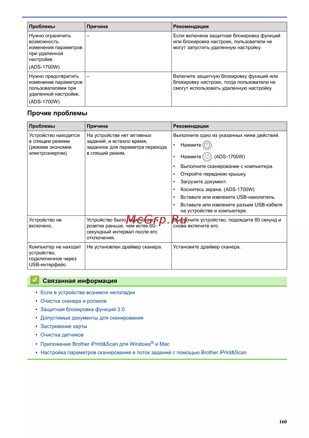 Brother ADS-1200 — рекомендации по устранению проблем с удаленной настройкой устройства [164/223]