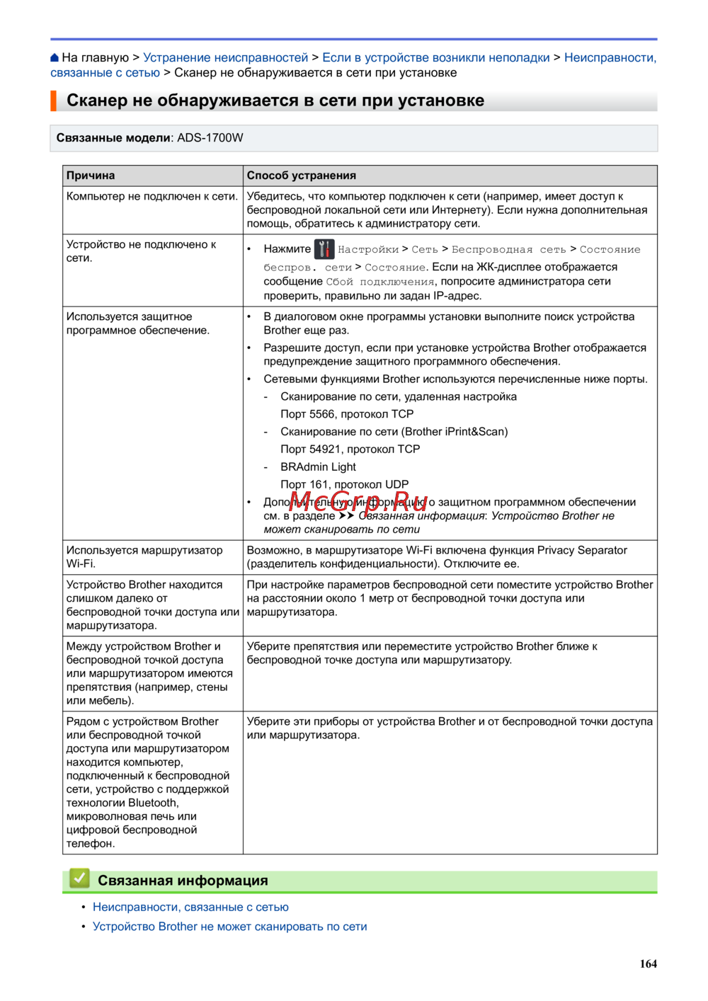связанные с сетью > Сканер не обнаруживается в сети при установке