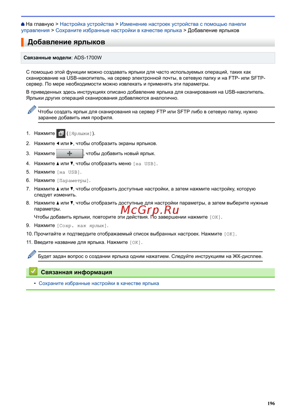 Brother ADS-1200 — как создать ярлыки для сканирования на устройстве [200/223]