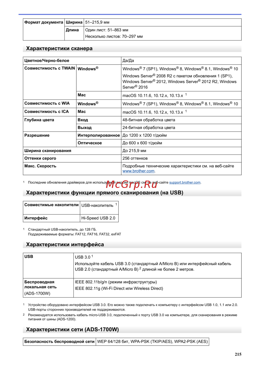 Brother ADS-1200 — технические характеристики сканеров: совместимость и возможности [219/223]
