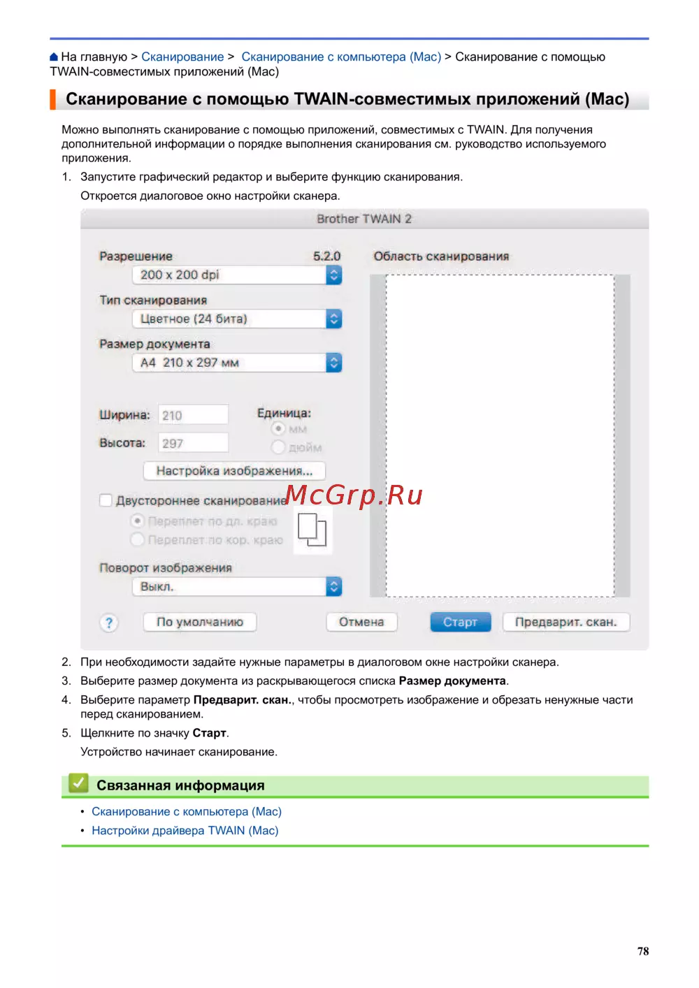 Brother ADS-1200 — сканирование с компьютера на Mac с использованием TWAIN-приложений [82/223]