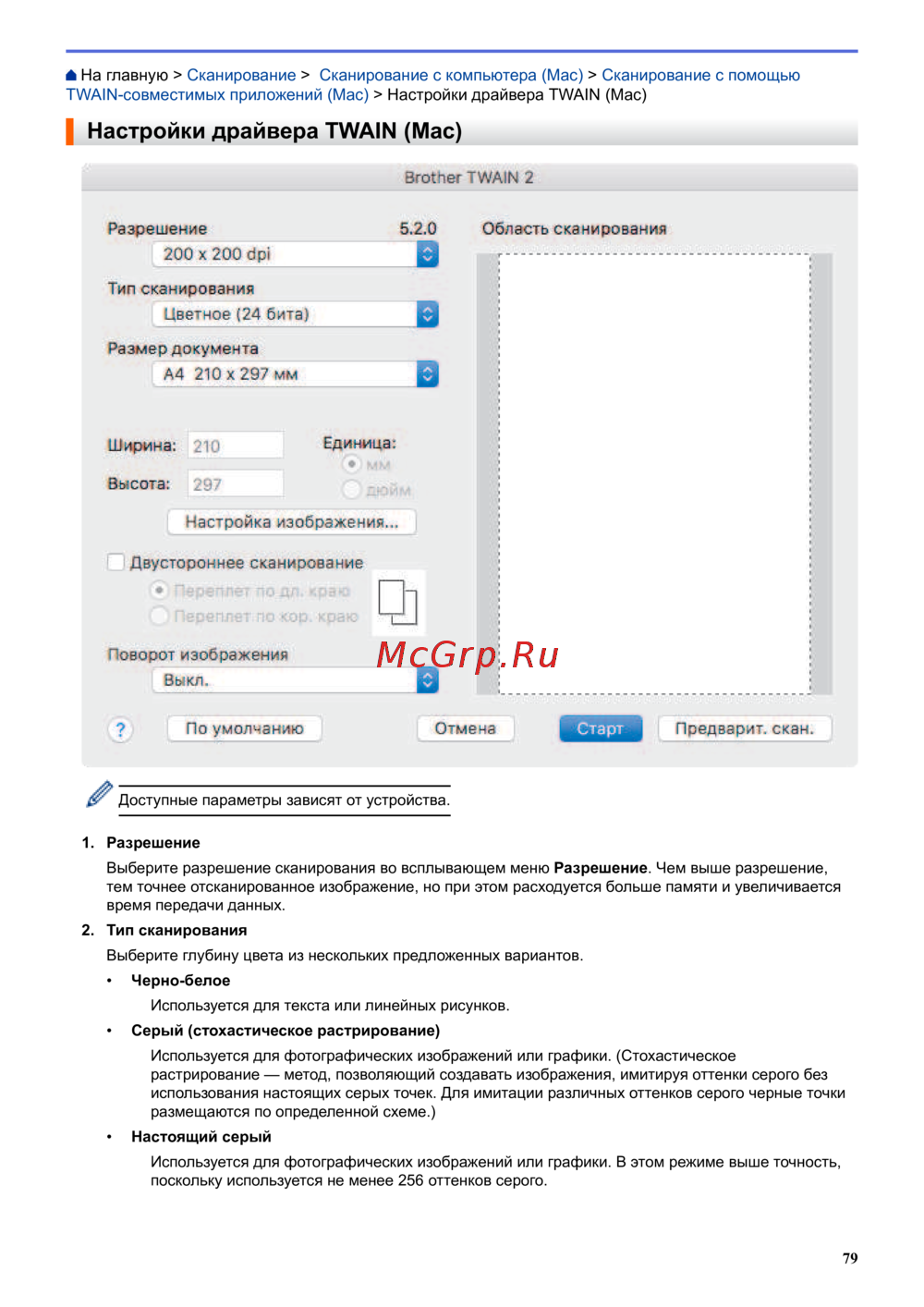 Brother ADS-1200 — настройки драйвера TWAIN для сканирования на Mac [83/223]