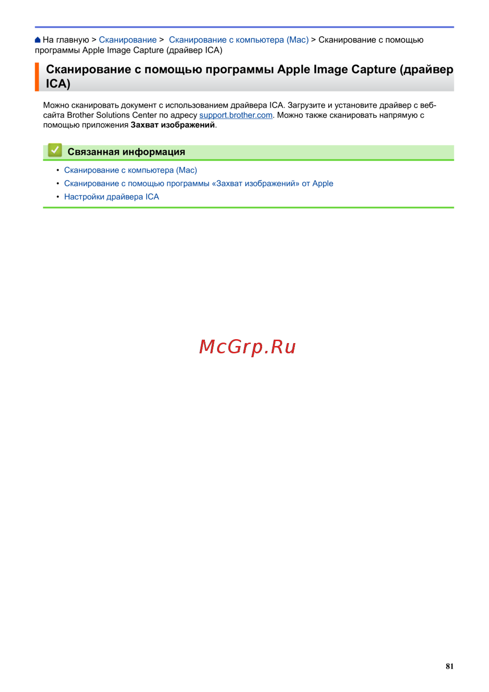 сайта Brother Solutions Center по адресу support.brother.com. Можно также сканировать напрямую с