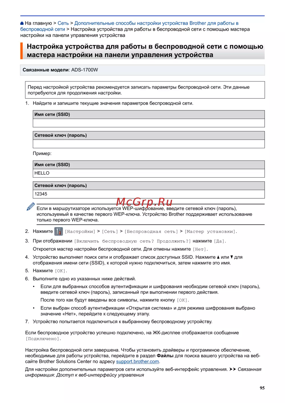 Brother ADS-1200 — настройка устройства для работы в беспроводной сети: пошаговое руководство [99/223]