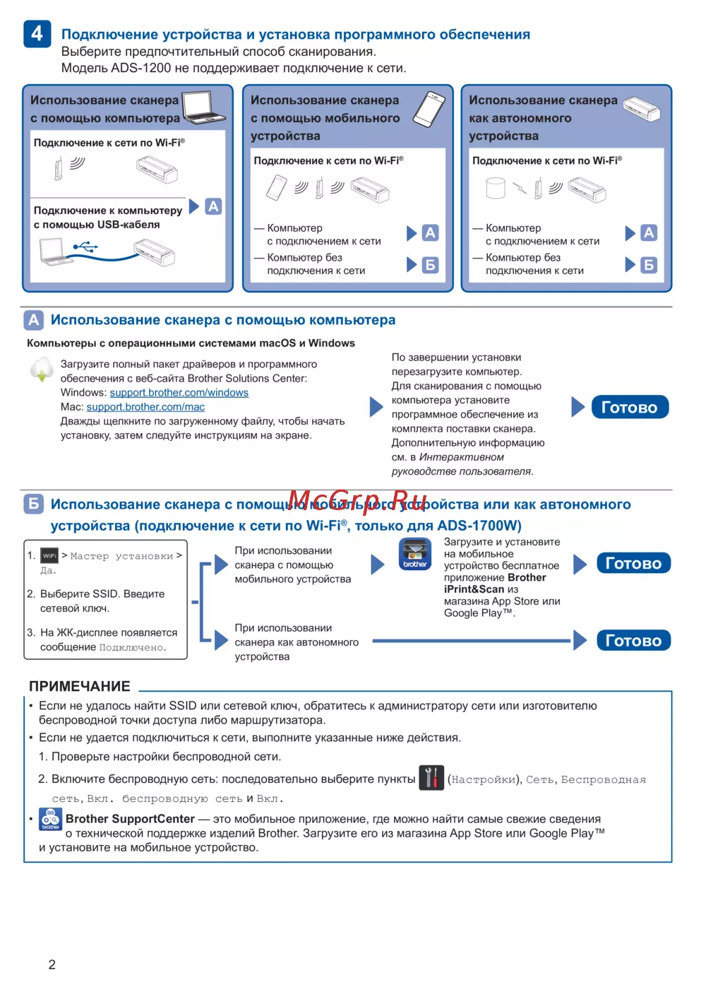 Brother ADS-1200 — подключение и установка программного обеспечения для сканера [2/11]