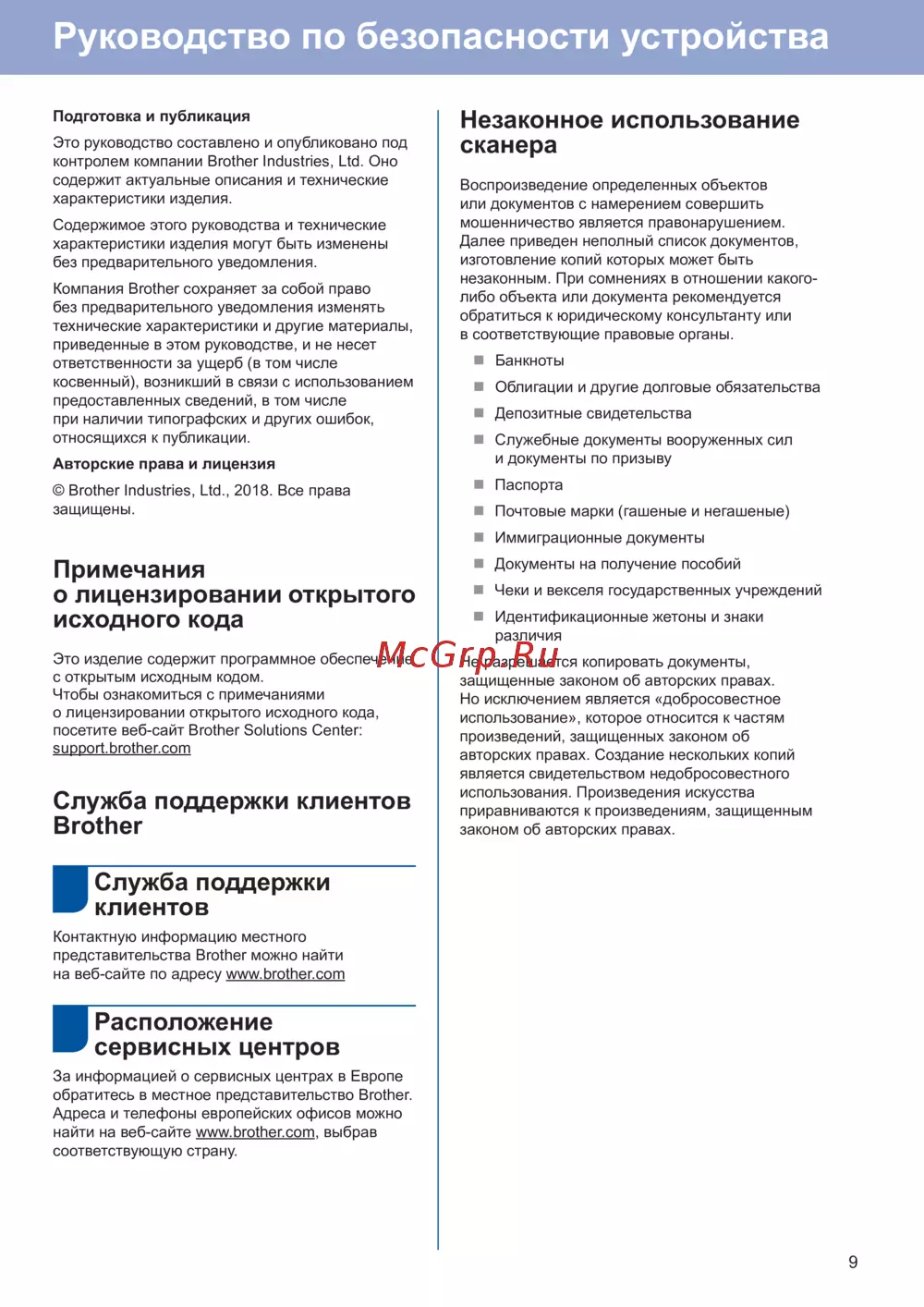 ![Brother ADS-1200 [9/11] Служба поддержки клиентов brother](/views2/1471388/page9/bg9.png)