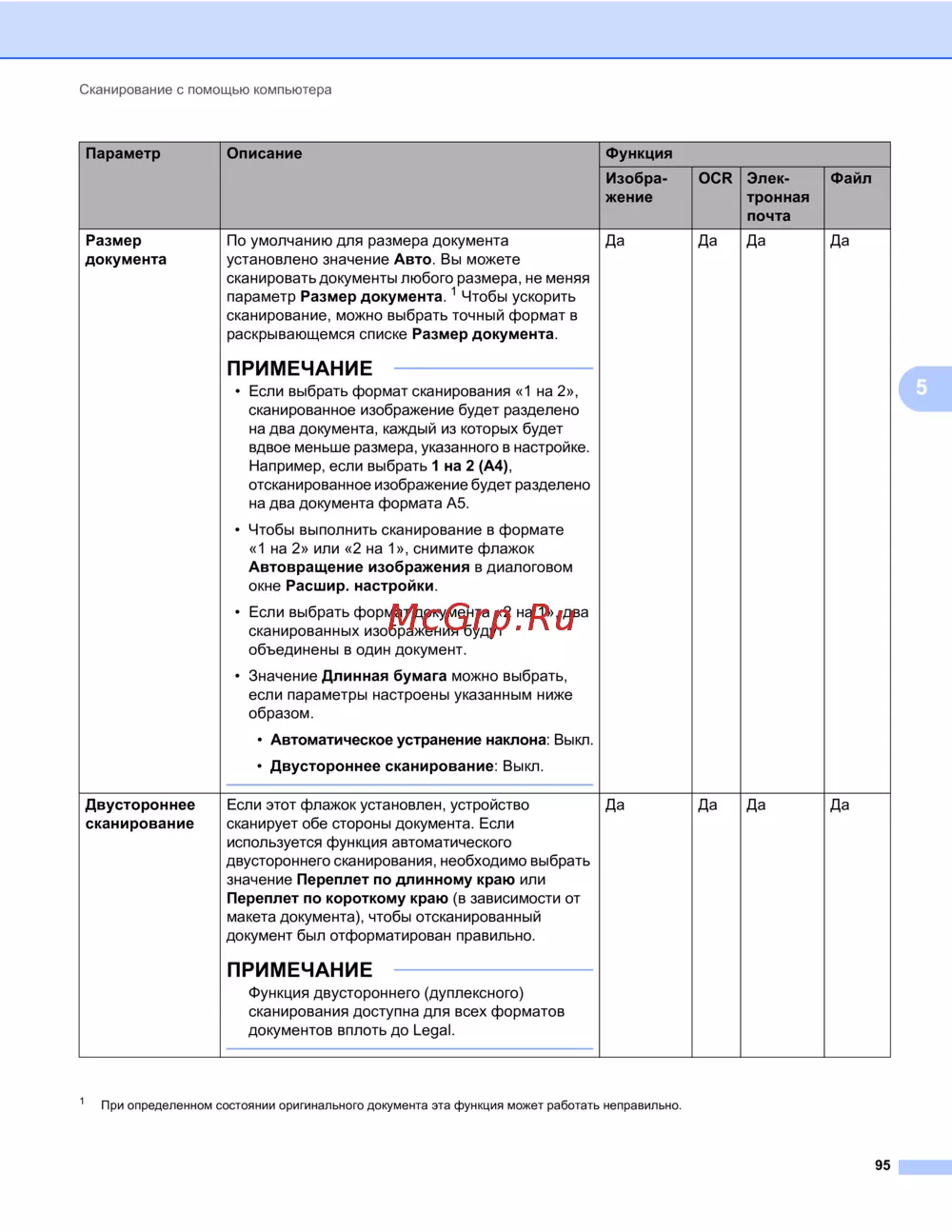 При определенном состоянии оригинального документа эта функция может работать неправильно.
