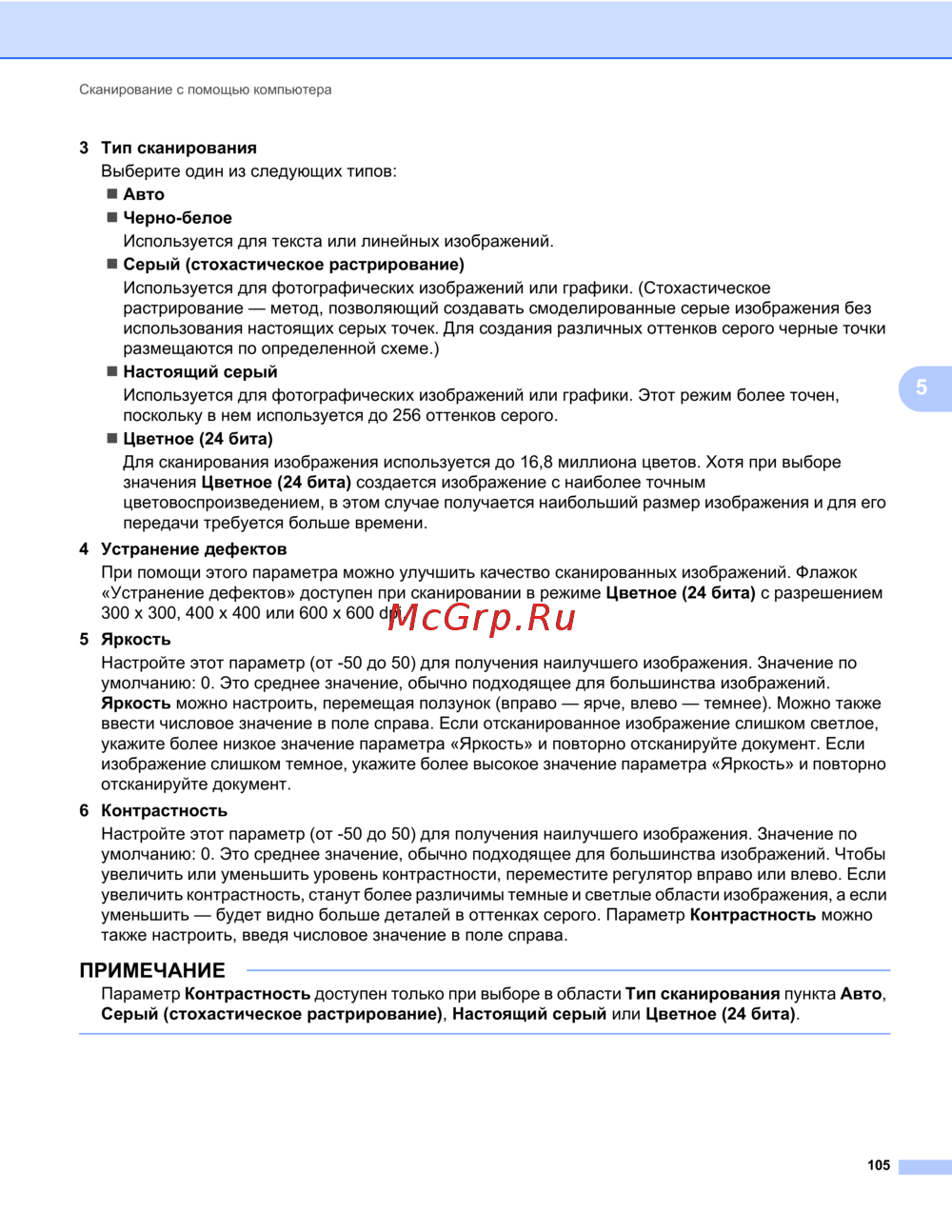 Параметр Контрастность доступен только при выборе в области Тип сканирования пункта Авто,