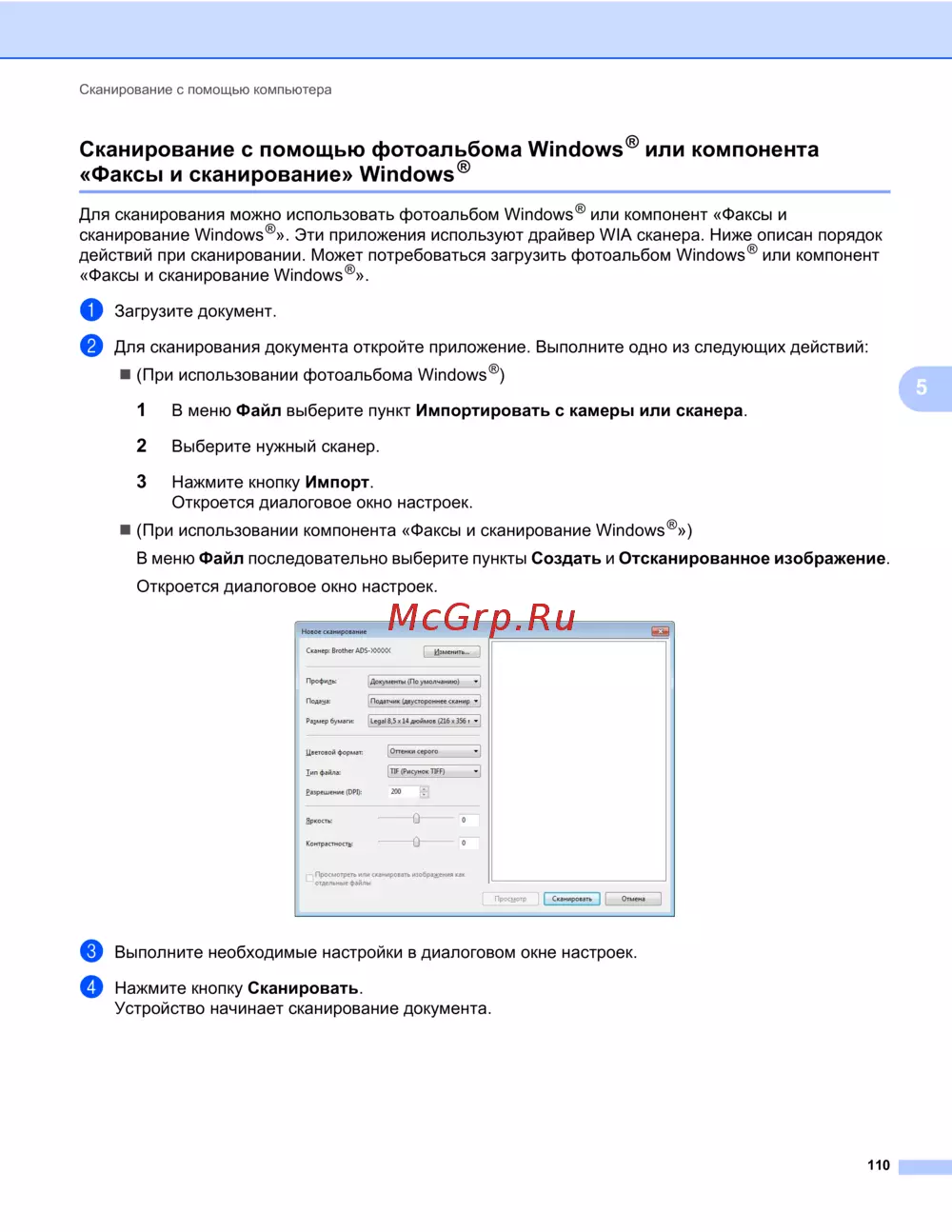Brother ADS-2100e — как сканировать документы с помощью компьютера: пошаговая инструкция [123/252]