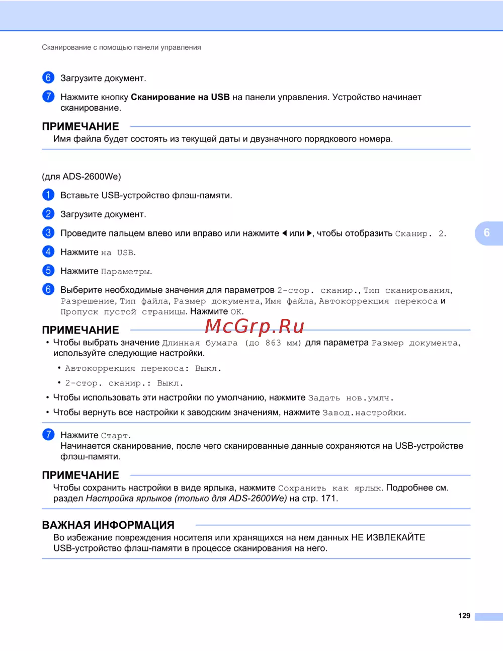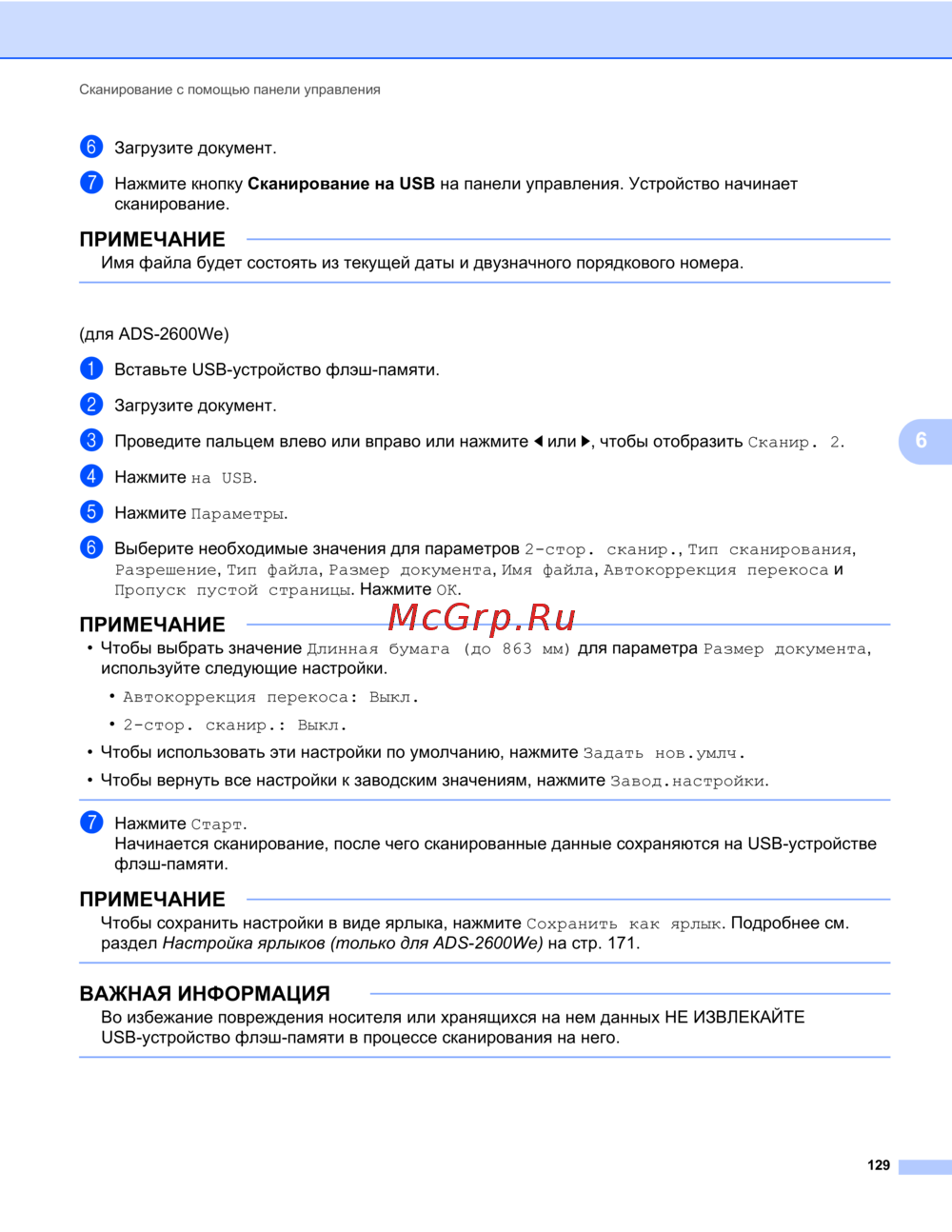 Brother ADS-2100e — инструкция по сканированию документов на USB-устройство [142/252]