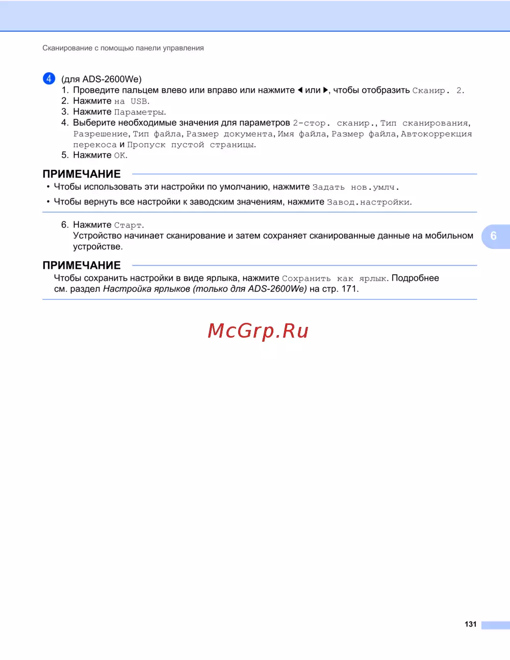 см. раздел Настройка ярлыков (только для ADS-2600We) на стр. 171.
