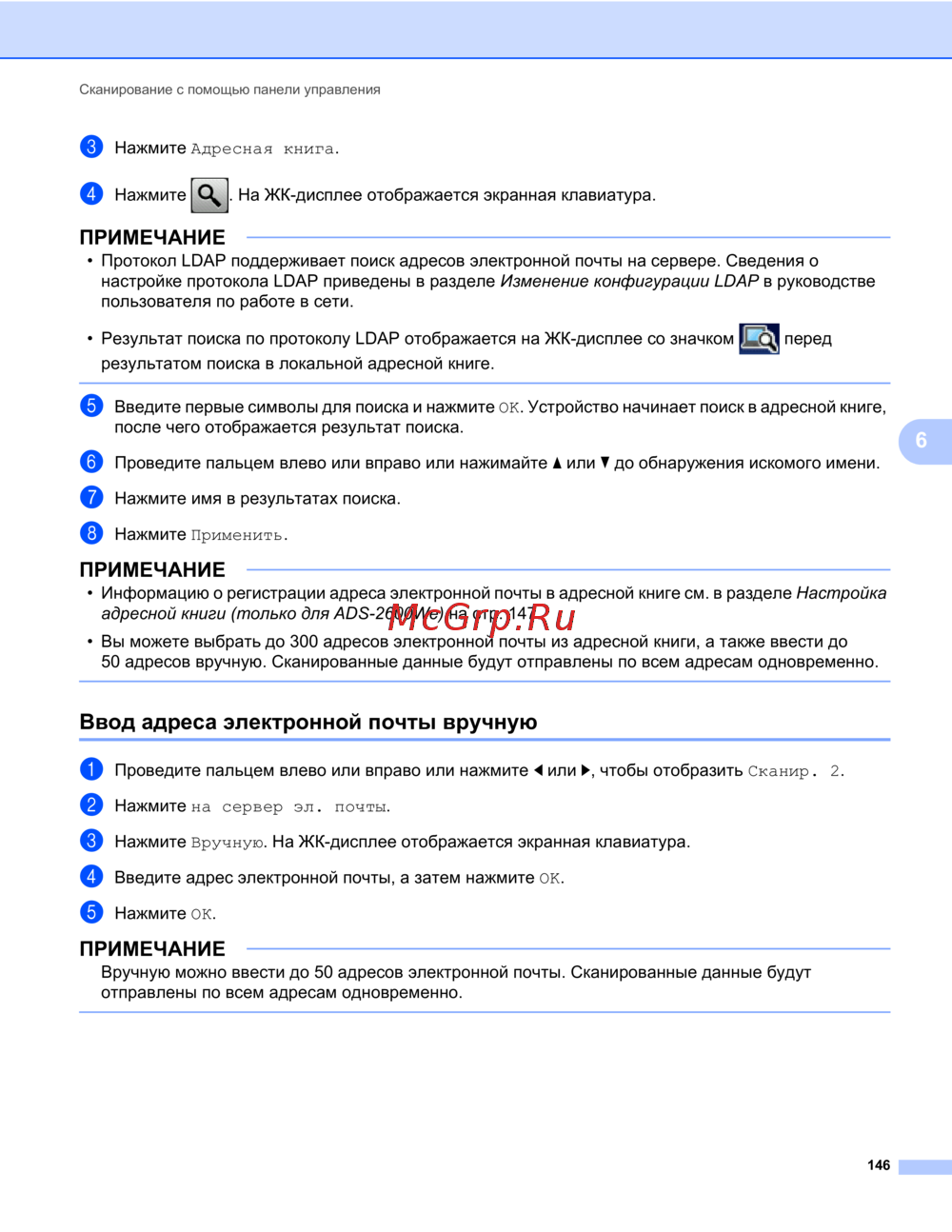 адресной книги (только для ADS-2600We) на стр. 147.