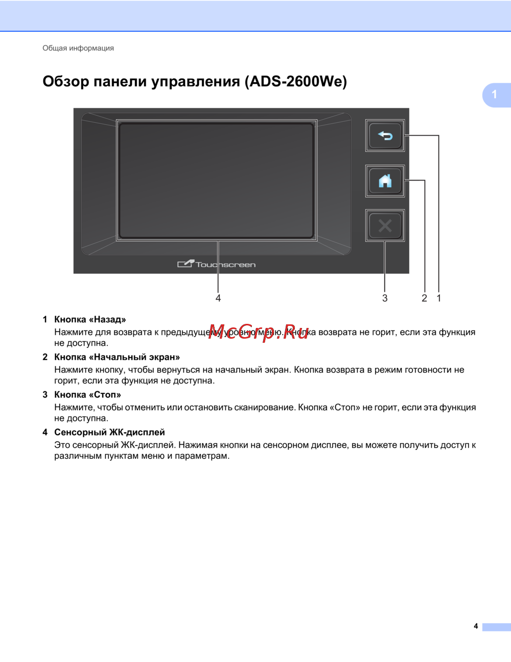 Обзор панели управления (ADS-2600We) 1