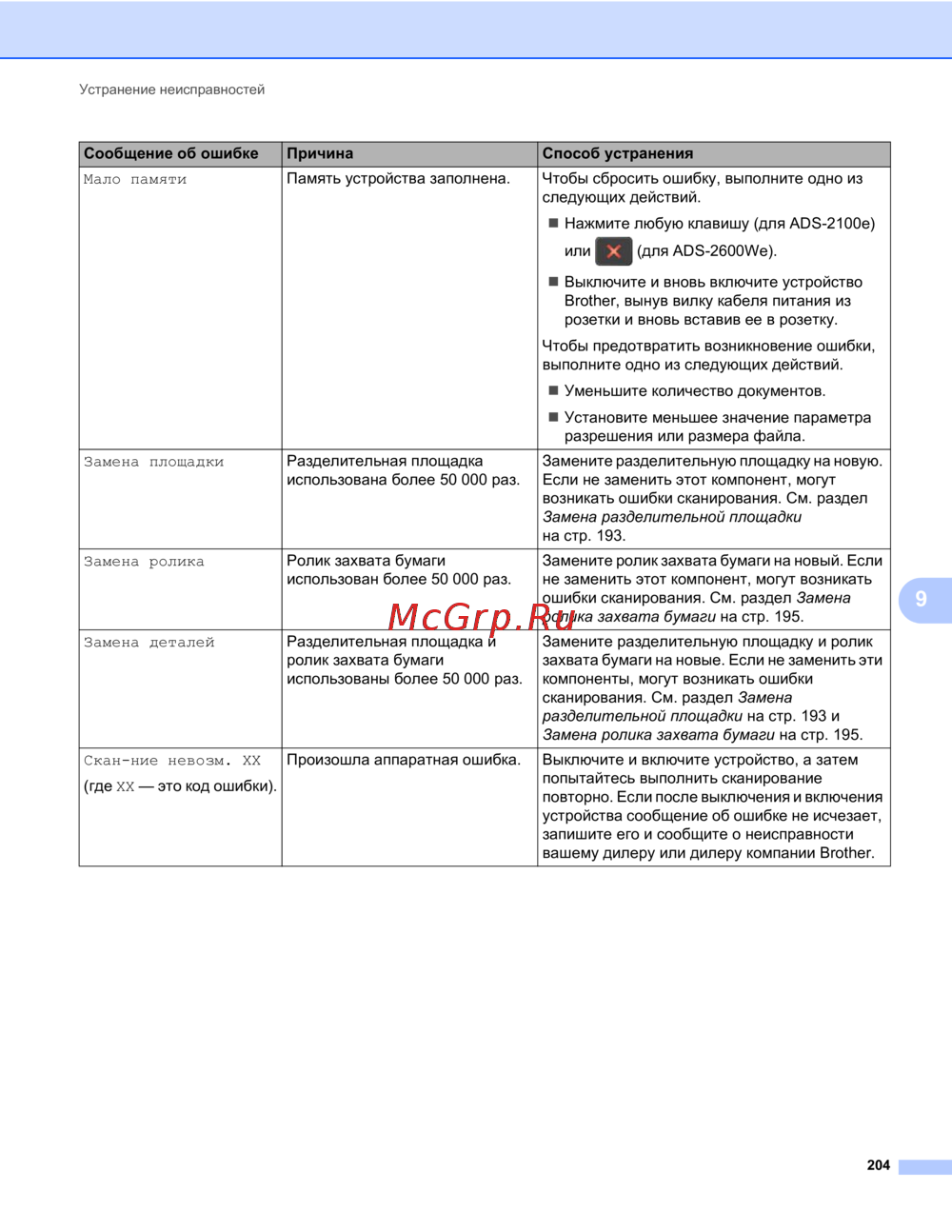 - Срок службы может различаться в зависимости от рабочей среды типа документов и частоты сканирования документов эти компоненты можно приобрести у большинства дилеров brother p.203