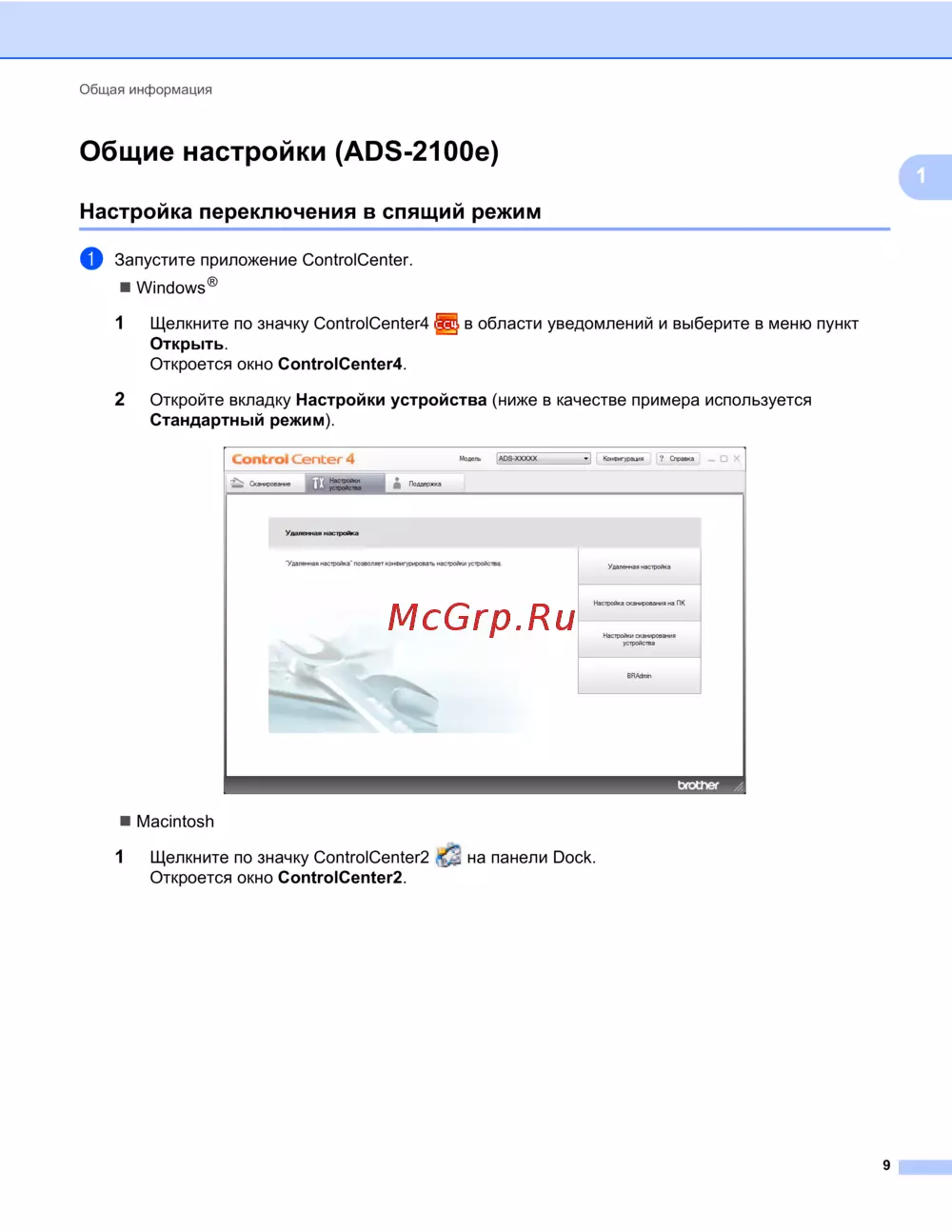 Общие настройки (ADS-2100e) 1