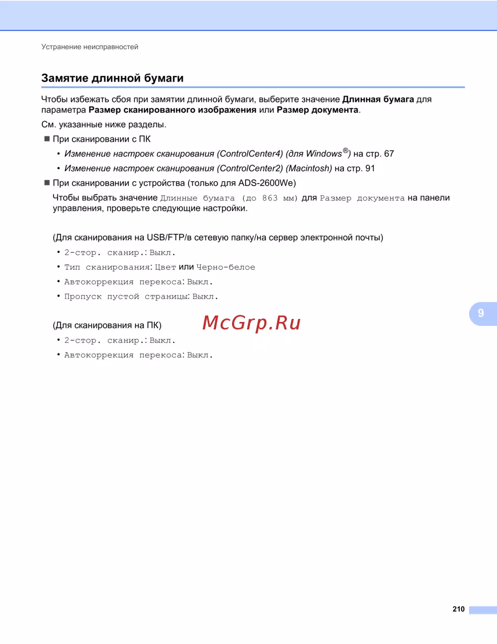 Brother ADS-2100e — устранение неисправностей при сканировании длинной бумаги [223/252]