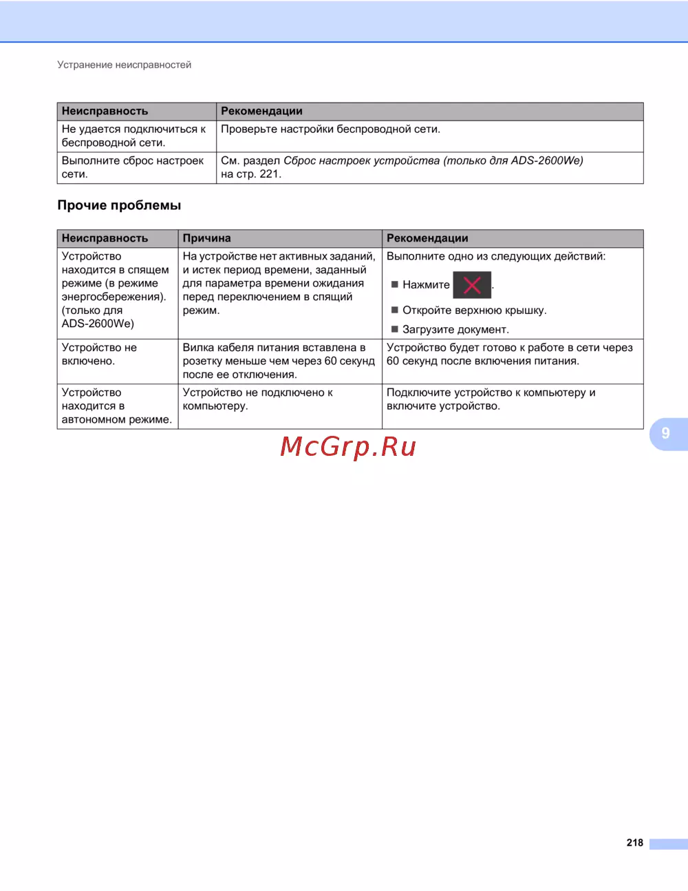 - При возникновении проблем с устройством p.224