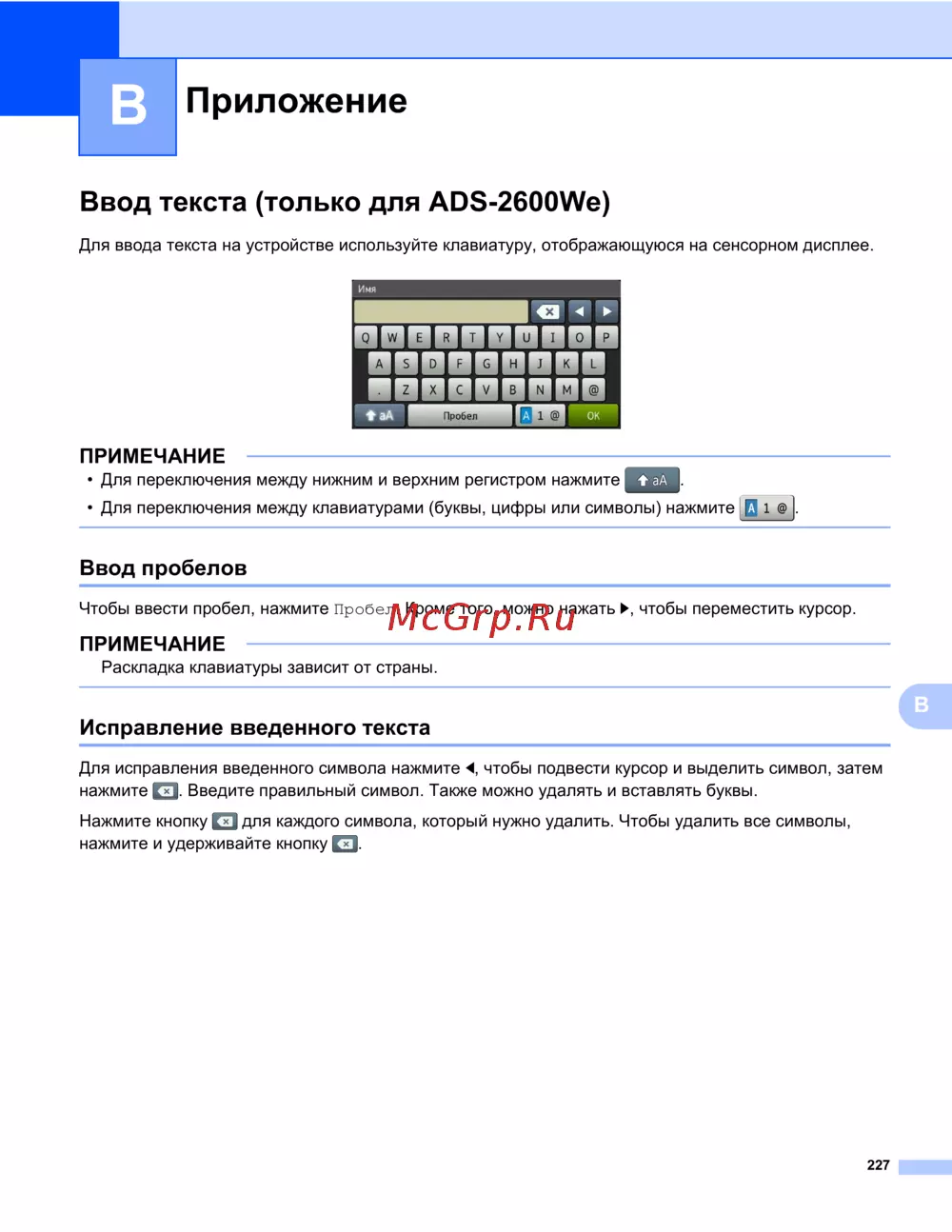 Brother ADS-2100e — инструкция по вводу текста на сенсорном дисплее устройства [240/252]
