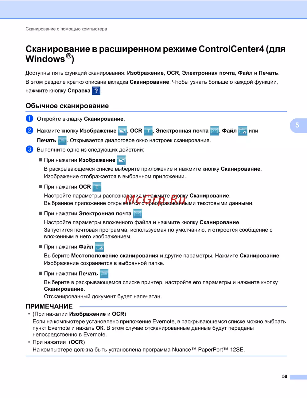 Сканирование в расширенном режиме ControlCenter4 (для