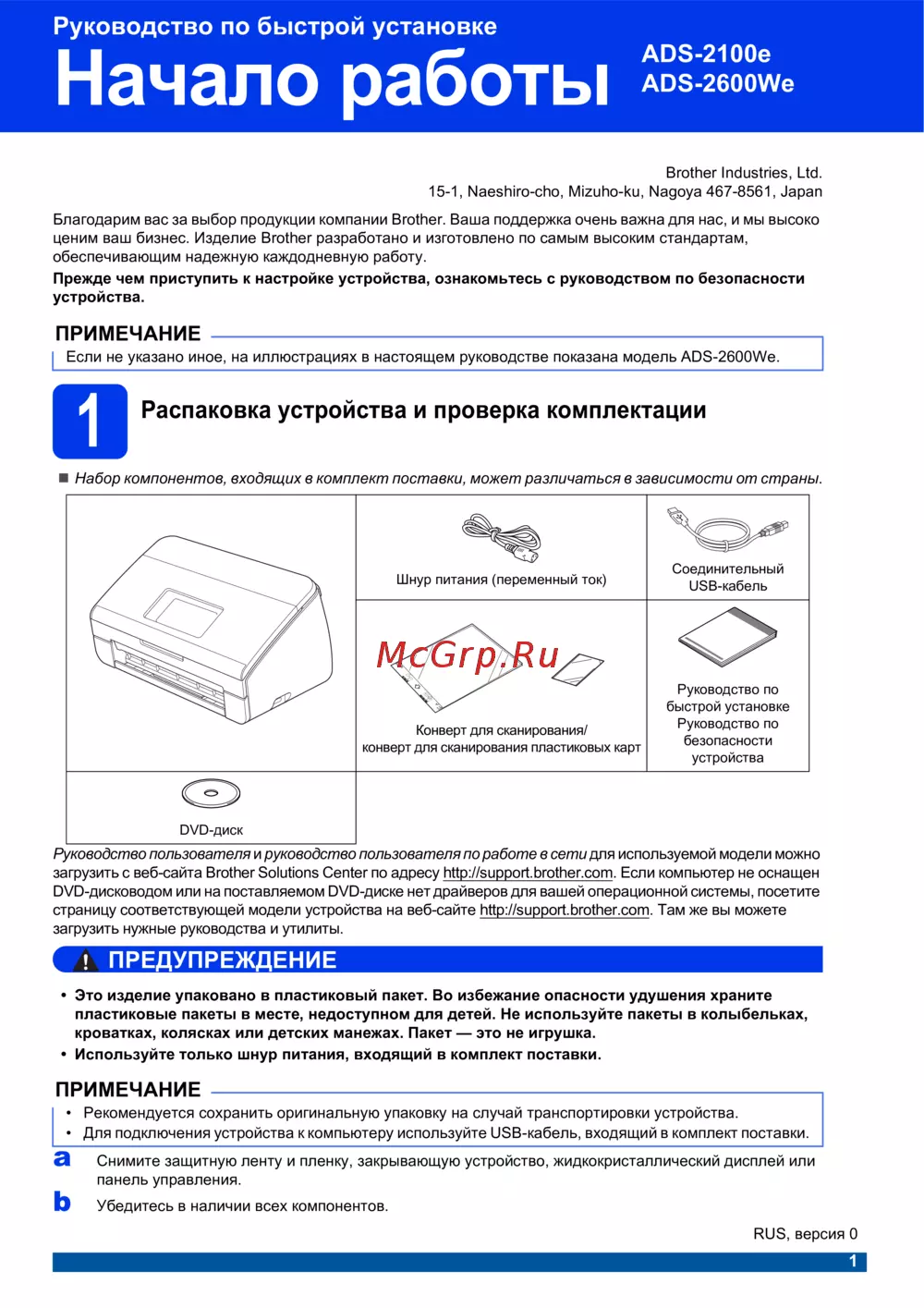 Руководство по быстрой установке ADS-2100e/ADS-2600We