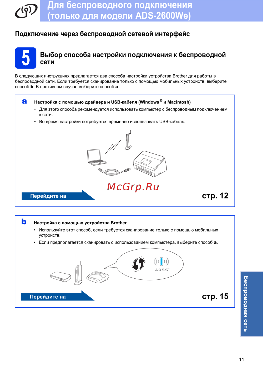 Brother ADS-2100e — настройка беспроводного подключения для сканирования [11/22]
