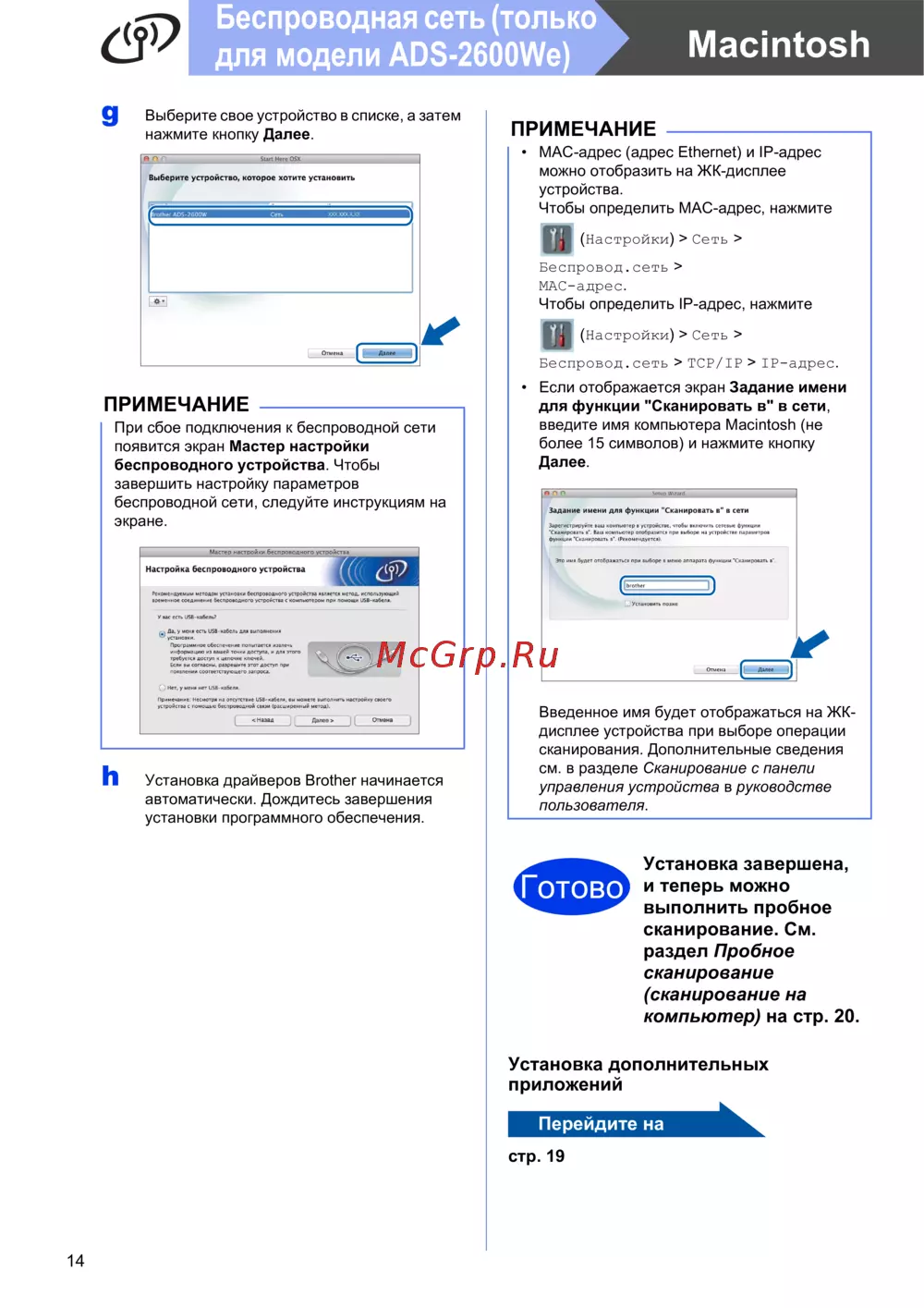Brother ADS-2100e — установка беспроводной сети для устройств Macintosh [14/22]