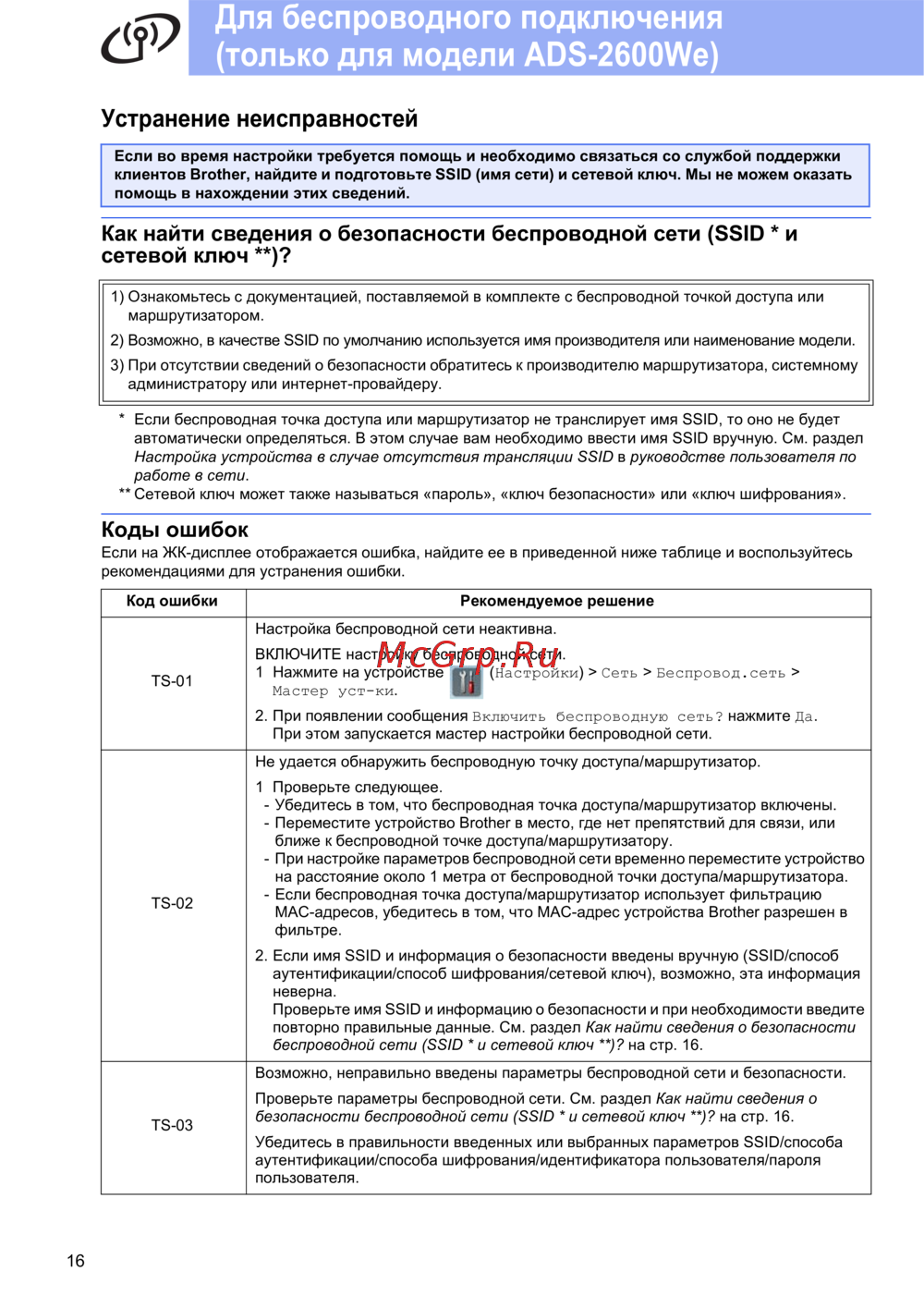 Brother ADS-2100e — устранение неисправностей беспроводного подключения и настройка [16/22]