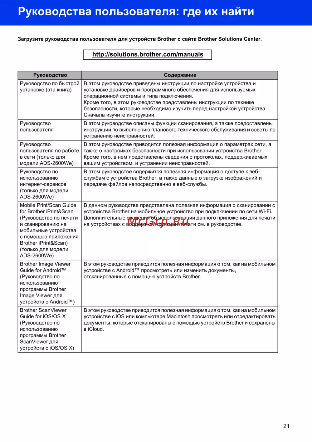 Brother ADS-2100e — руководства пользователя для устройств: где найти и скачать [21/22]