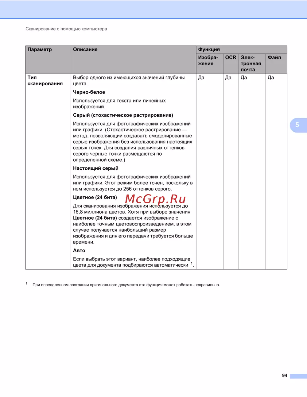 Узнайте о различных режимах сканирования документов, включая черно-белое, серое и цветное. Оптимизируйте качество изображений и время передачи.