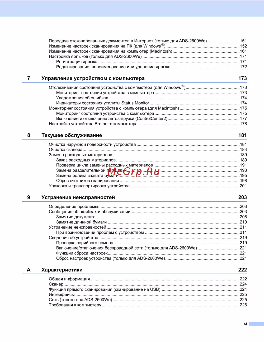 Сеть (только для ADS-2600We)..........................................................................................................225