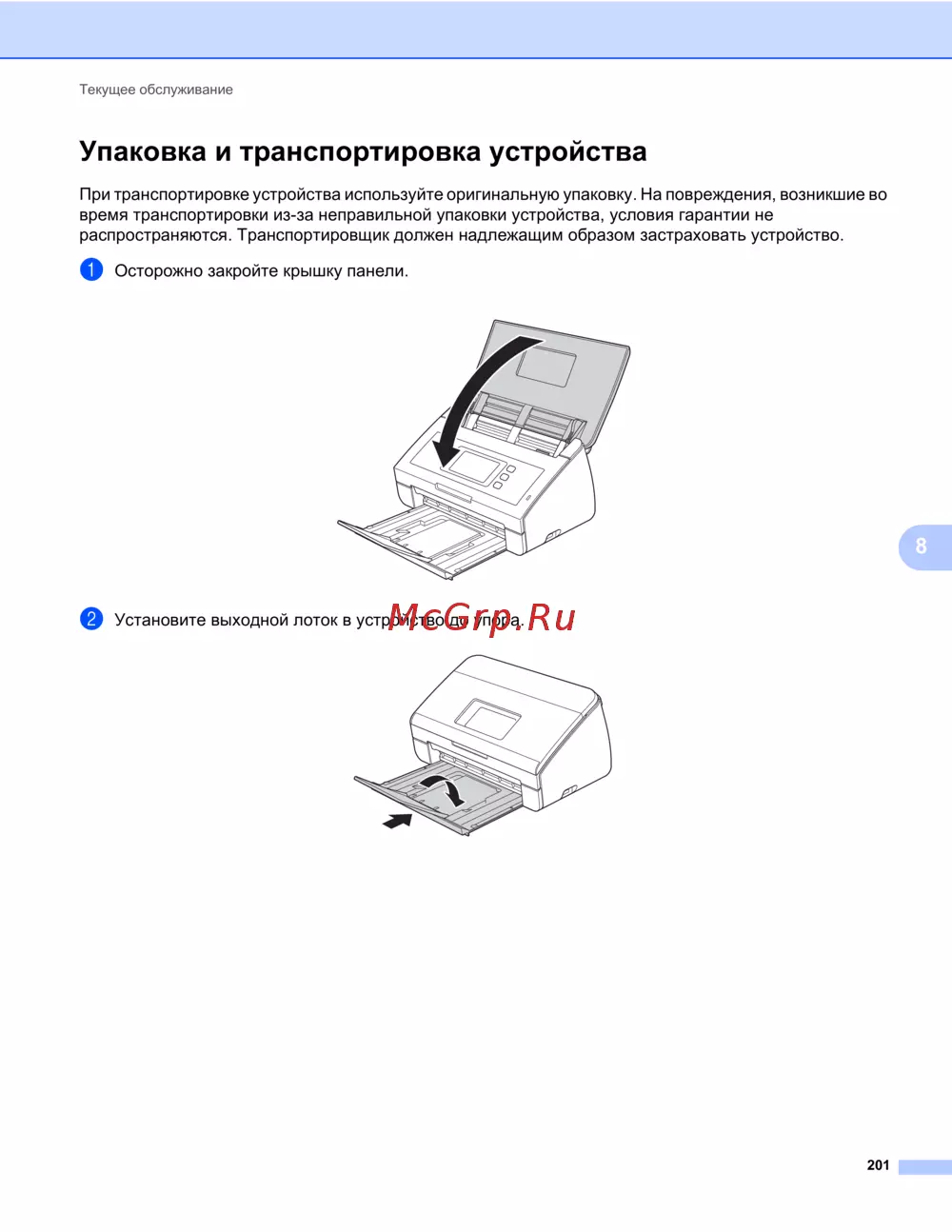 Brother ADS-2600We [214/252] Упаковка и транспортировка устройства