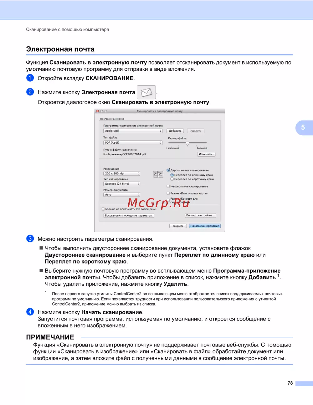 Функция Сканировать в электронную почту позволяет отсканировать документ в используемую по
