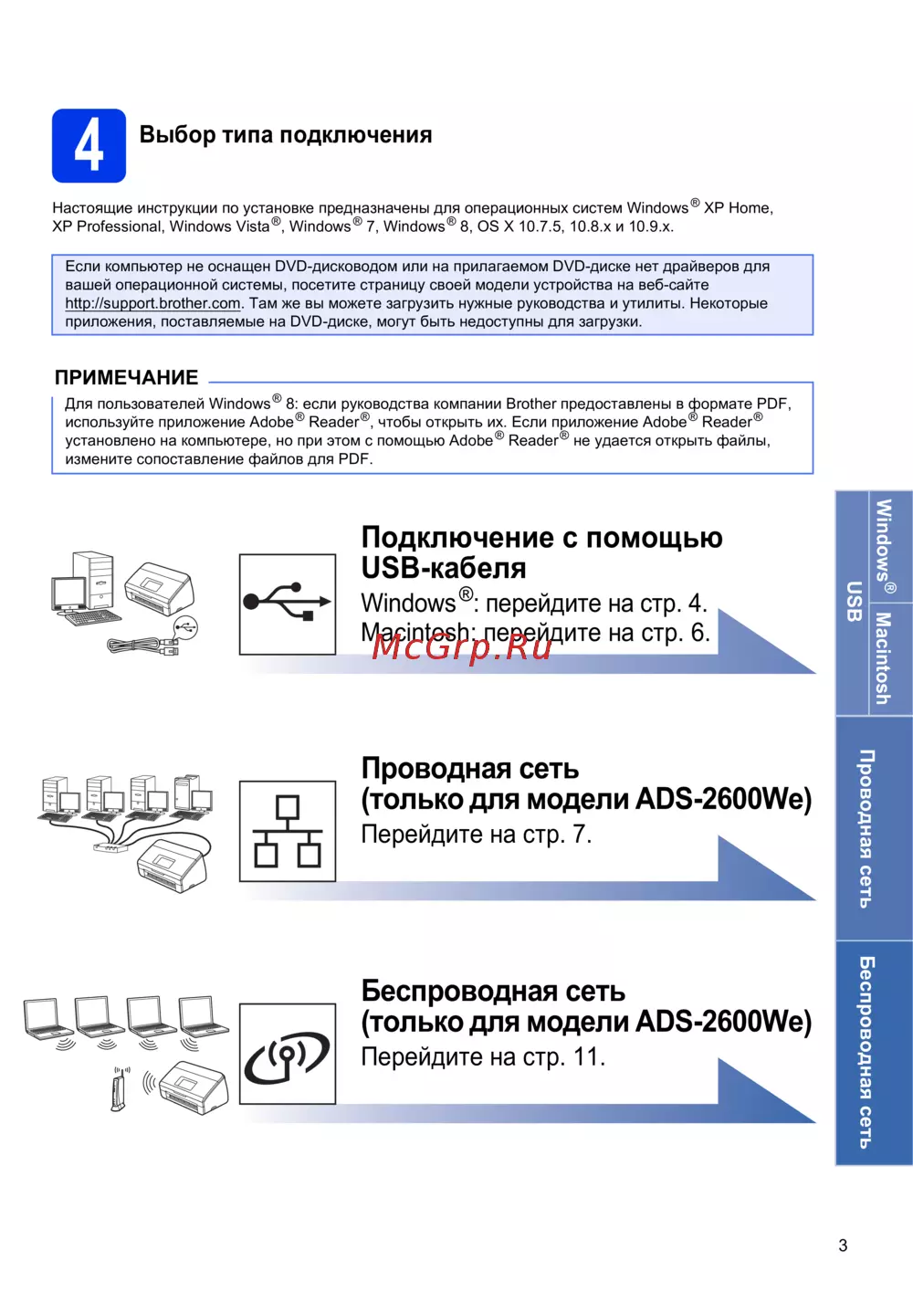 Brother ADS-2600We — инструкции по установке проводной и беспроводной сети для ПК и Mac [3/22]