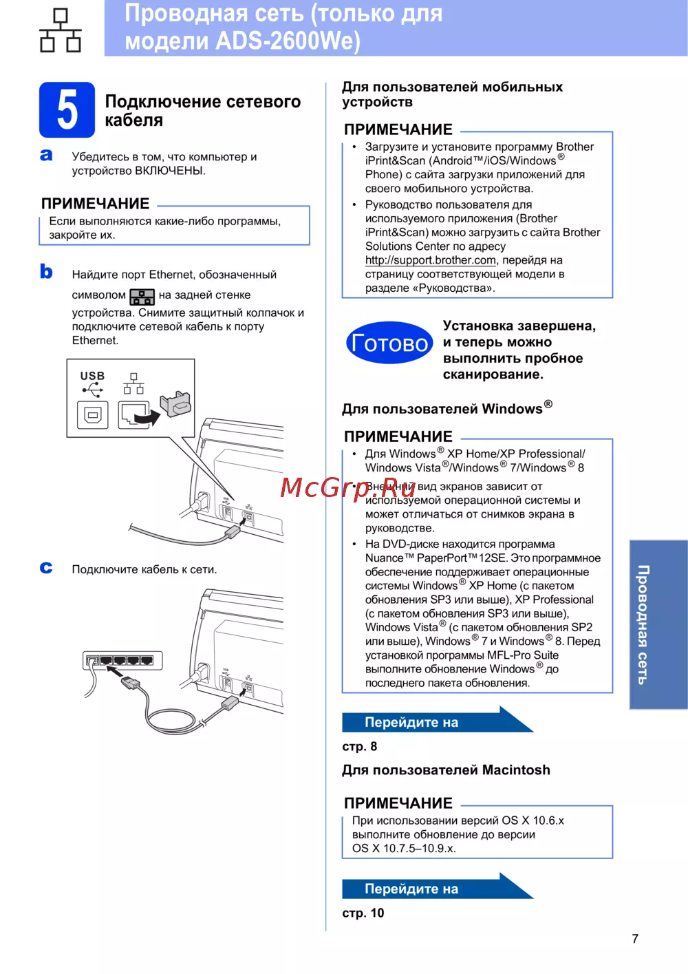 Brother ADS-2600We — инструкция по подключению проводной сети и установке программного обеспечения [7/22]