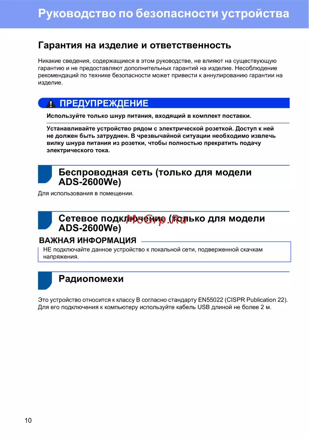 Brother ADS-2600We — руководство по безопасности устройства и гарантии на изделие [10/23]