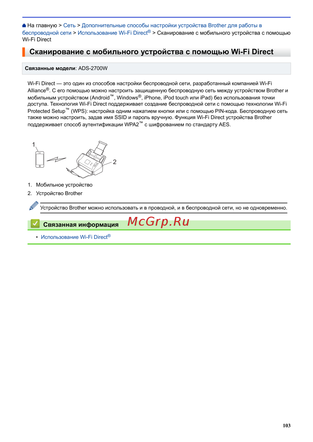 Brother ADS-2200 — настройка устройства для работы с Wi-Fi Direct и мобильными устройствами [107/215]
