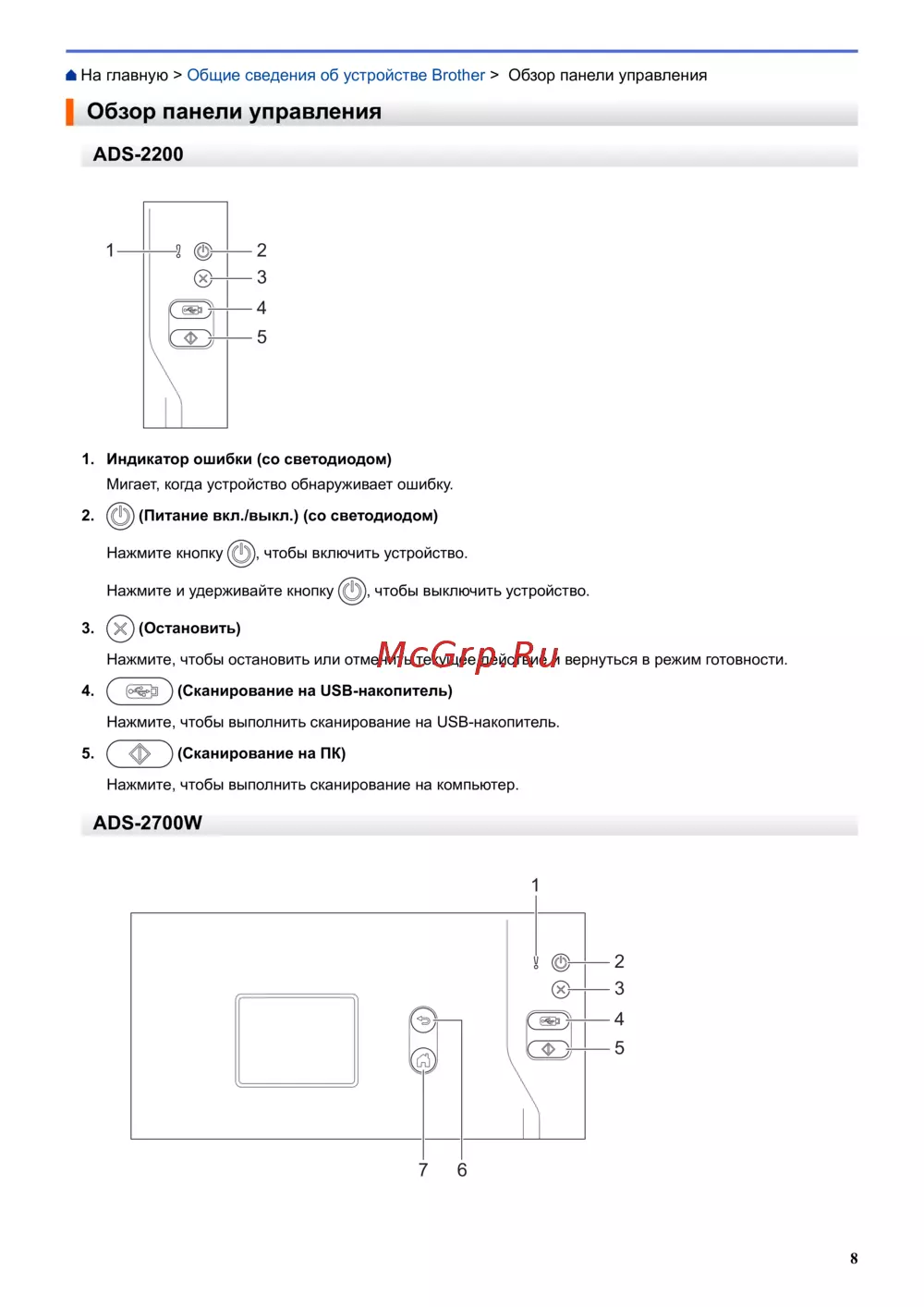 Brother ADS-2200 — обзор панели управления устройства для сканирования [12/215]