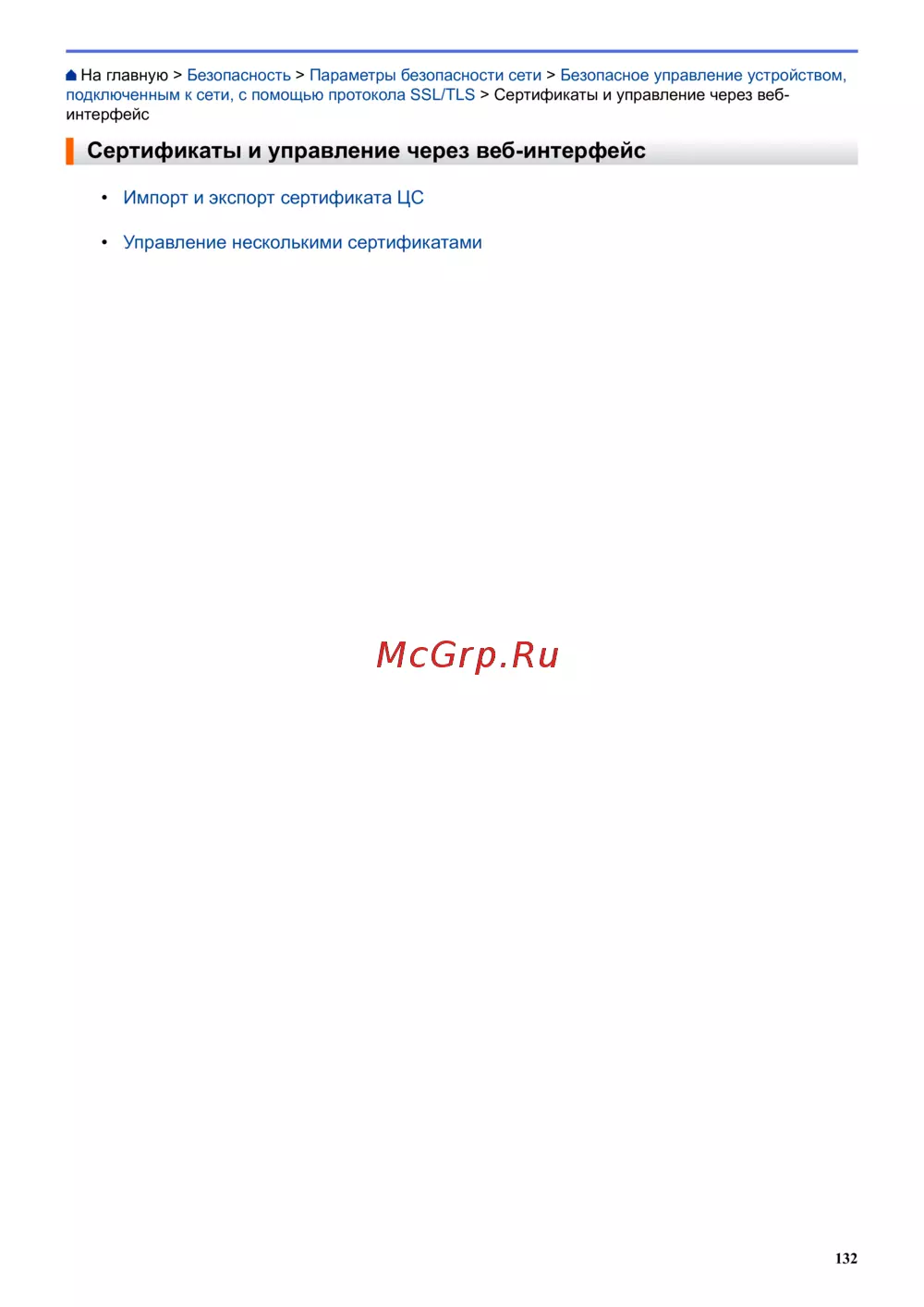 подключенным к сети, с помощью протокола SSL/TLS > Сертификаты и управление через веб-